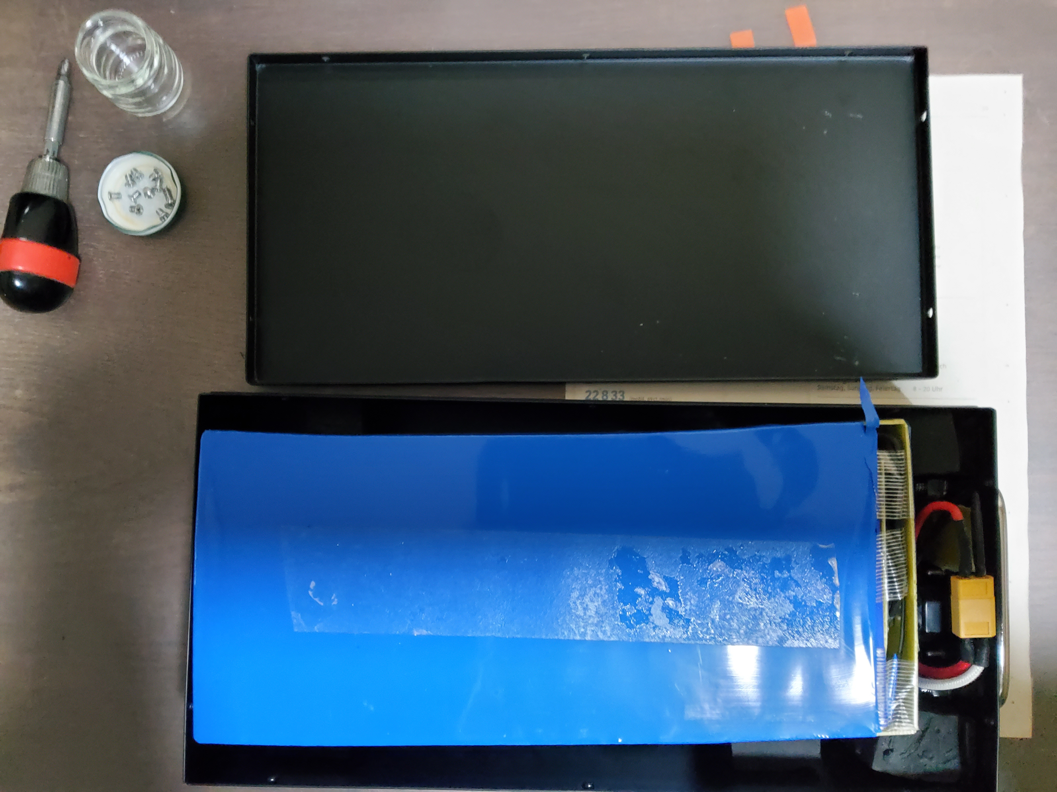 Als Erstes habe ich den Akku gleich aufgeschraubt, um zu sehen, ob wirklich Prismatische-Lithium-Ionen-Zellen verbaut sind.