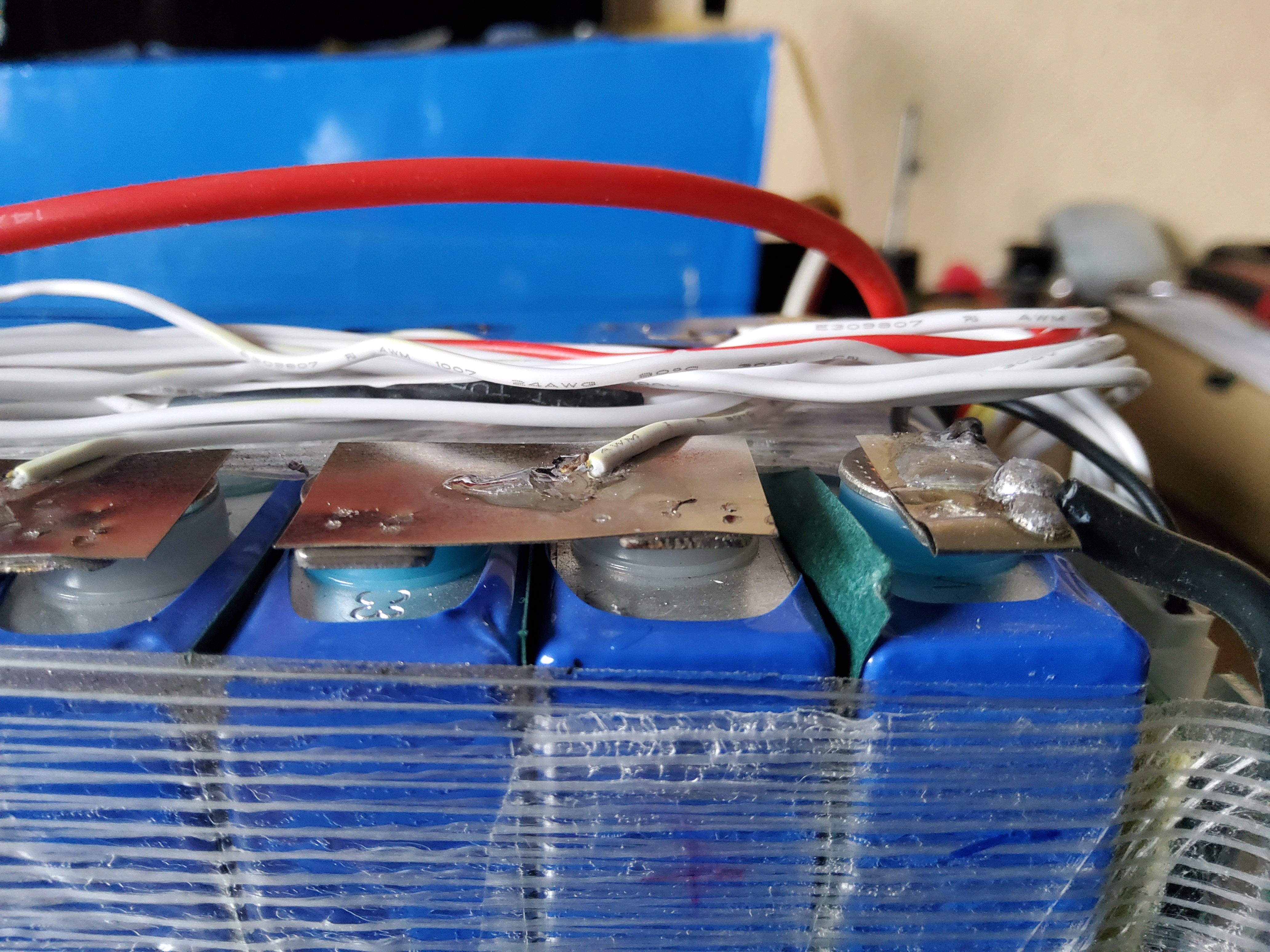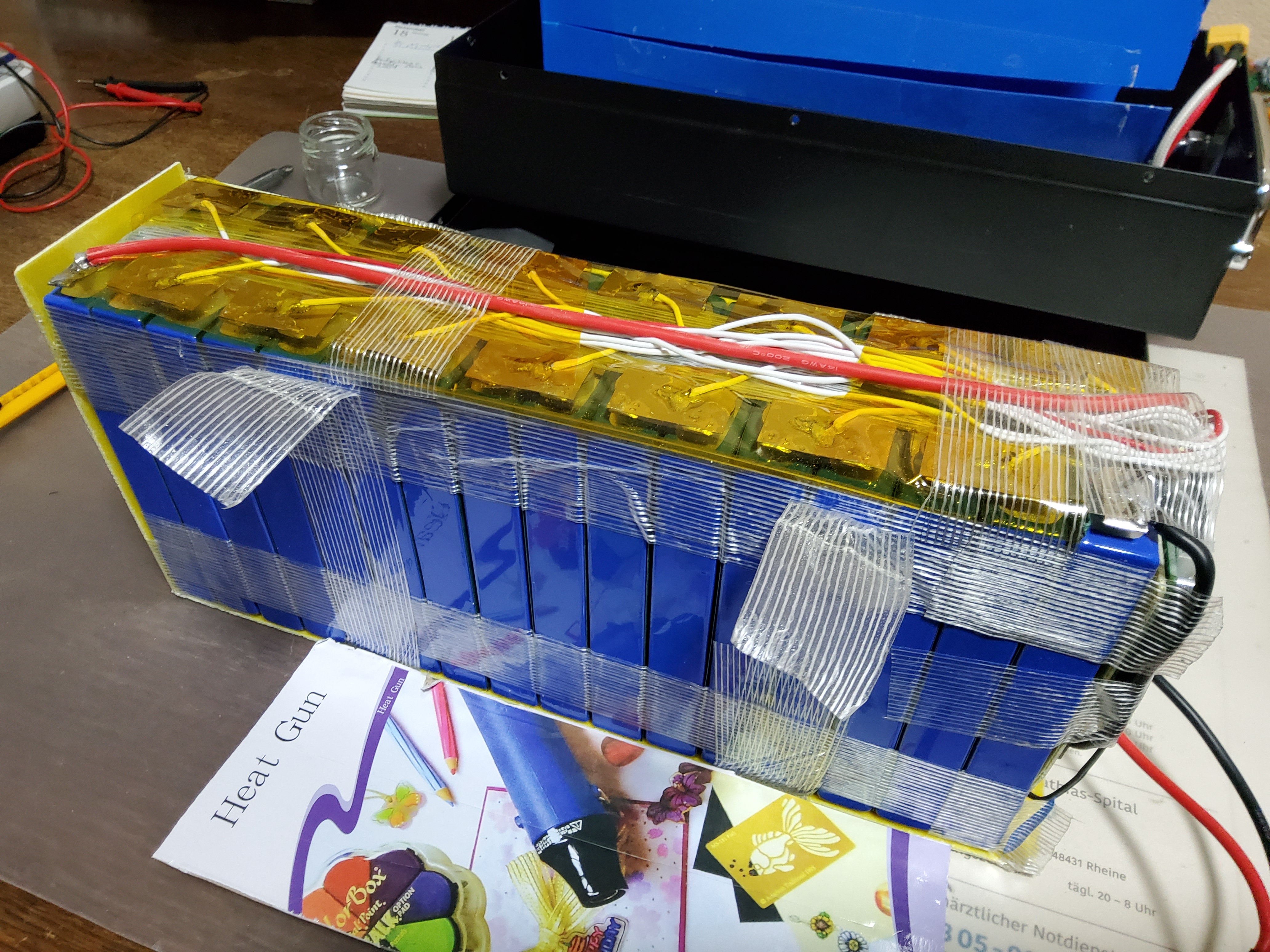 autsch, also professionell sieht das nicht aus, eher schnell zusammengeschustert.Die Zellenverbinder sind Punktgeschweißt und die Kabel zum BMS abgelötet.
