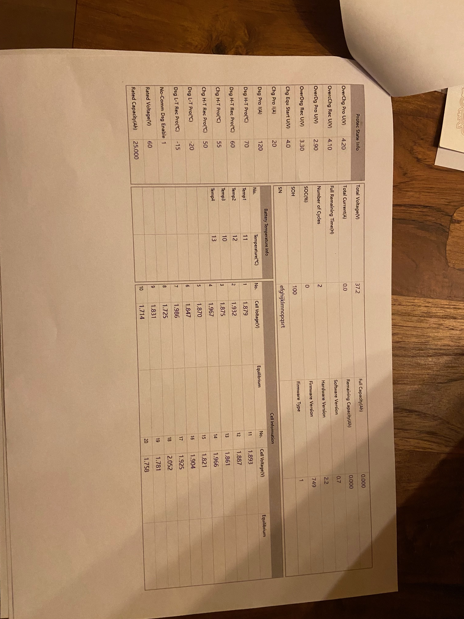 Blick ins Prüf-Prtokoll: Die Zellen in meinem Akku waren bei Ankunft zum „Service“ bei Horwin bei 1,7-1,9 Volt, alle!