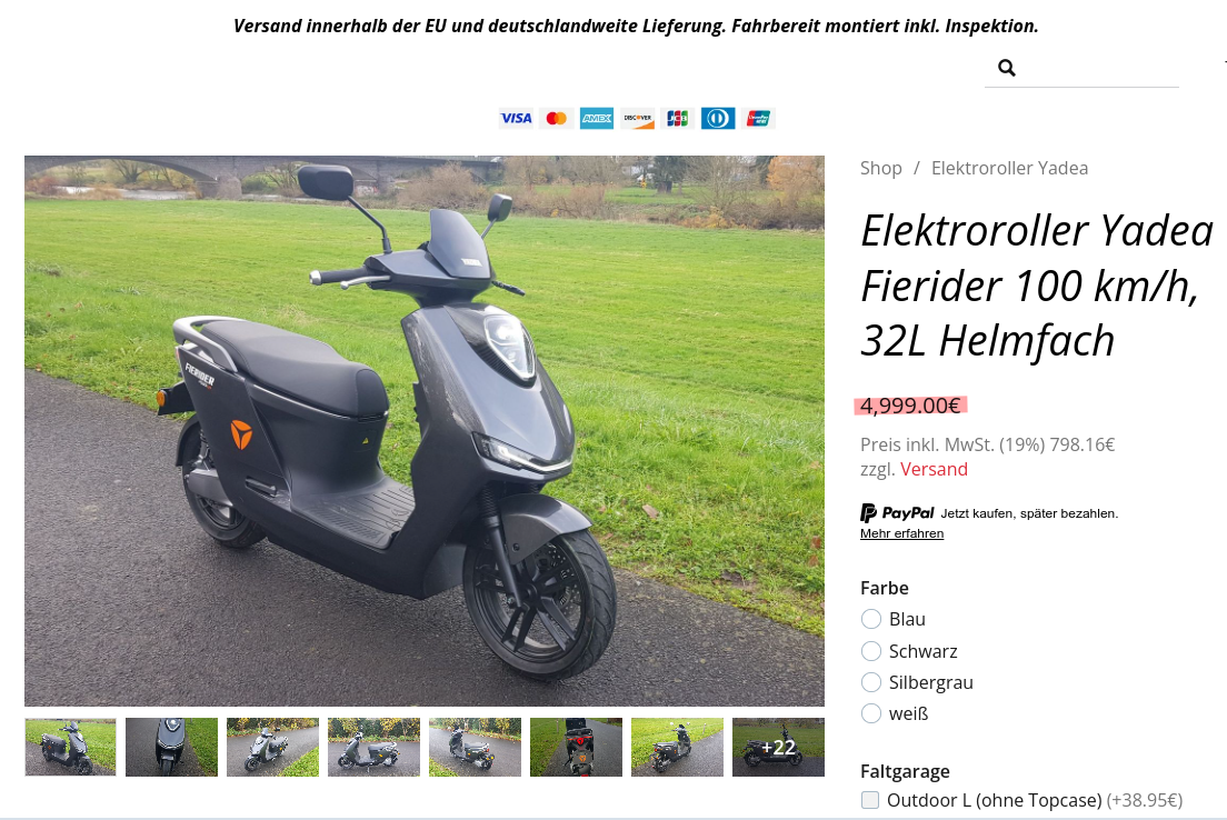 Stimmt, den YADEA Fierider hatte ich in der Aufzählung übergangen.