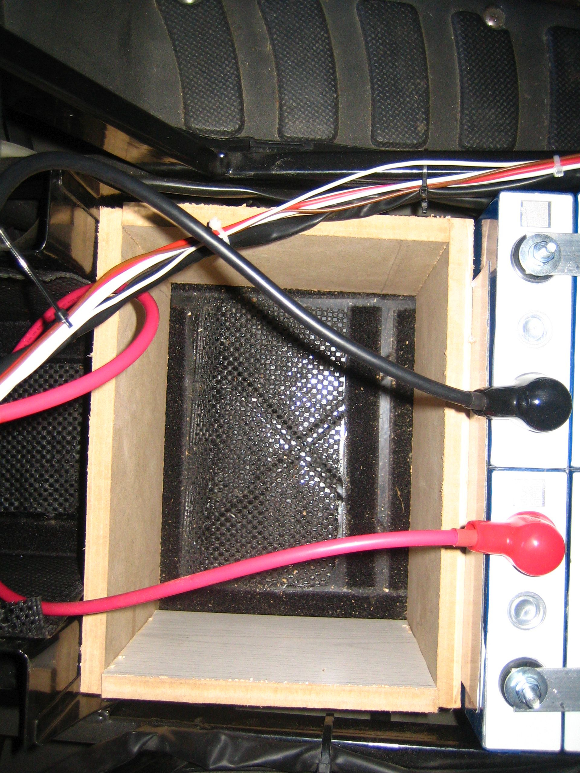 Aus vier ca. 150mm breiten Brettern habe ich einen Spacer (Abstandshalter) für das Batteriefach gebaut. In das Fach paßt zwar kein Feuerlöscher, vielleicht aber ein Verbandskasten, Werkzeug, Ersatzteile? Die erste Probefahrt war gestern: 48V Lithium sind natürlich etwas besser als 48V Blei. Nur, gegen meinen 72V Lithium Rennmax mit SVMC72150 sieht der 5kWh Roller in den Fahrleistungen alt aus.