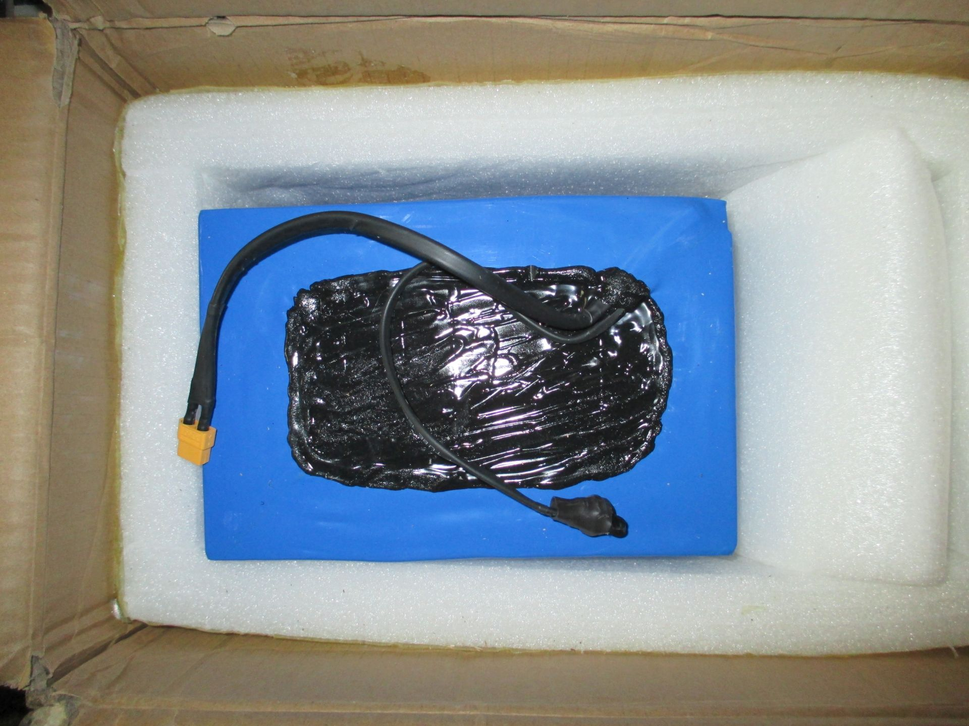 Gestern sind weitere 3,6kWh in Würfelform (200 Liitokala Li-50E Zellen) angekommen: https://de.aliexpress.com/item/10050036 ... pt=glo2deu Der Entladestecker ist ein XT60 Female und der Ladestecker ein DC 5,5mm mit 2,1mm Pin. Beim Single Day 11.11. oder jetzt im Winterschlußverkauf 11.02. bekommt man so etwas für rund 500,- Euro. Zusammen mit den vorhandenen 3 Akkus in Ziegelsteinform ergeben sich 72V 200Ah = 14,4kWh - ein Rekord für einen E-Max. Mit 4 * 14,5kg Batteriegewicht stimmt auch das Leergewicht von 160kg wieder. Bei einem zulässigen Gesamtgewicht von 350kg verbleibt eine Zuladung von 180kg. Der Einbau im hinteren Teil des Batteriefachs ist etwas aufwändiger oder ich nehme die vorderen 3 Akkus noch einmal heraus. Den Umbau mache ich Anfang März - ohne Diodenbox mit 4 * LSS 32A.