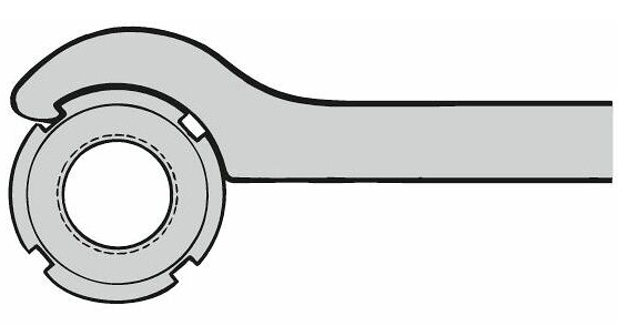 Es gibt Hakenschlüssel. Man kann auch einen stupfen Meißel nehmen.