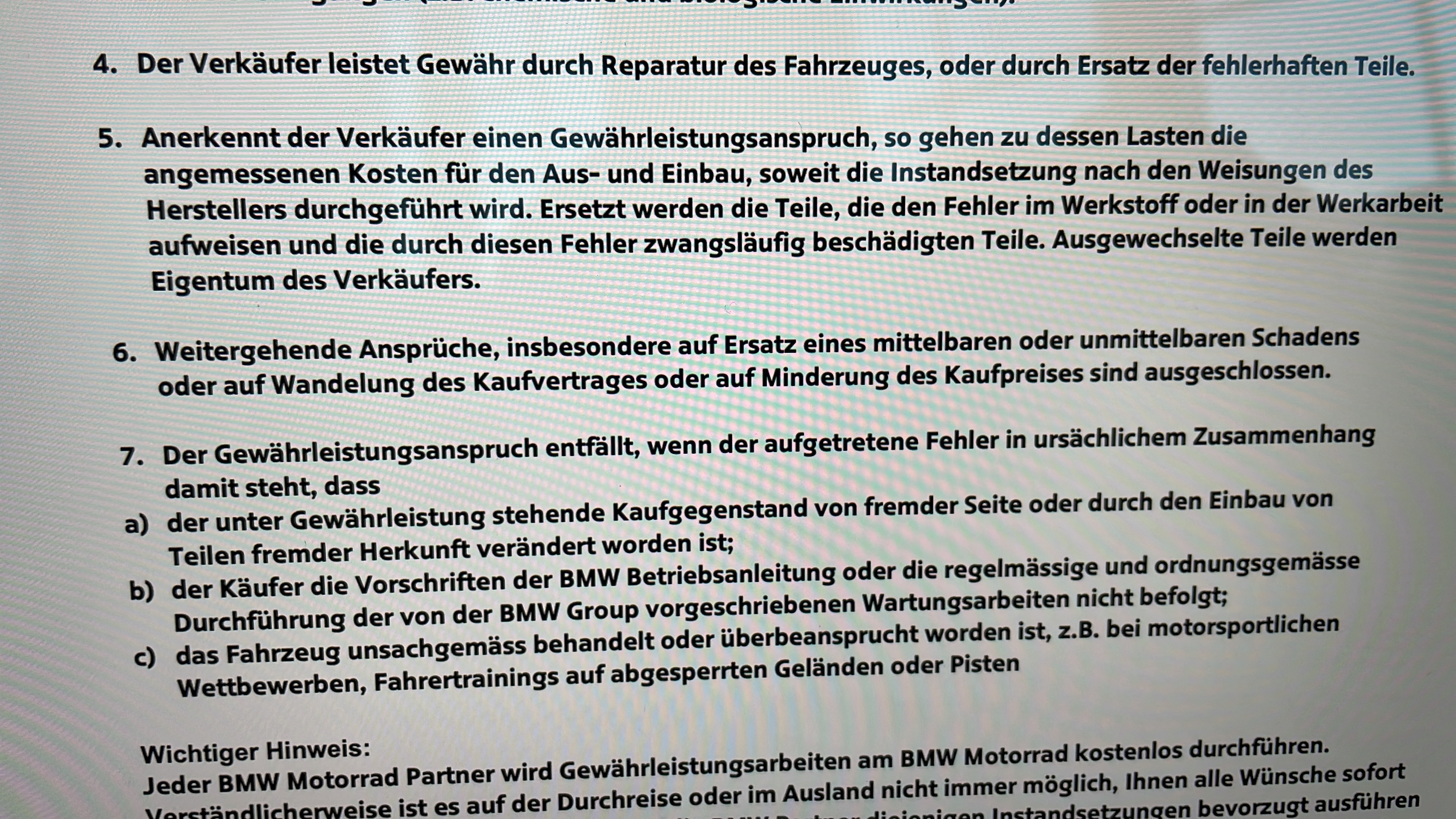 Steht so im Kaufvertrag drin, beim Zusatz zur Gewährleistung, Punkt 6.