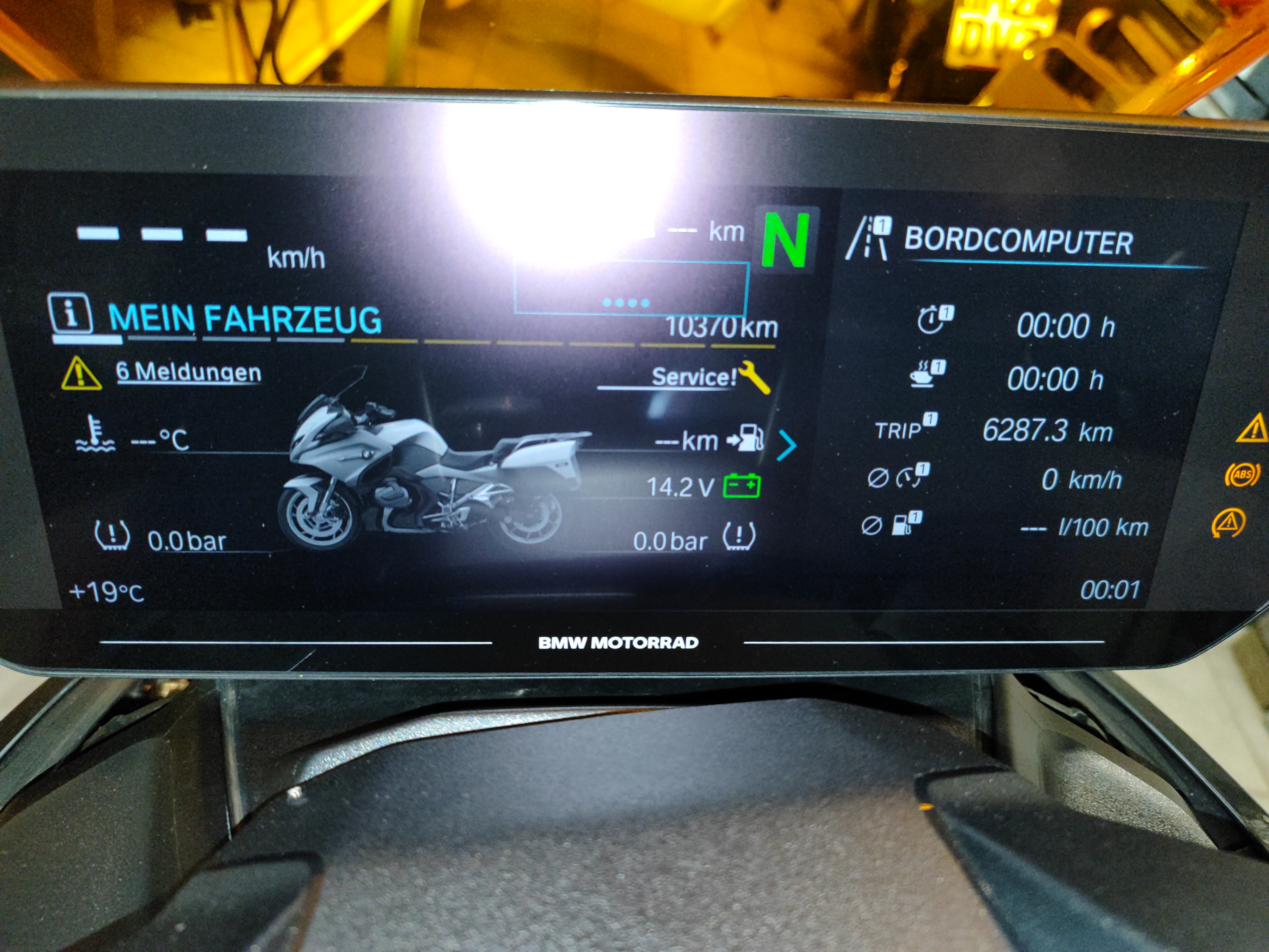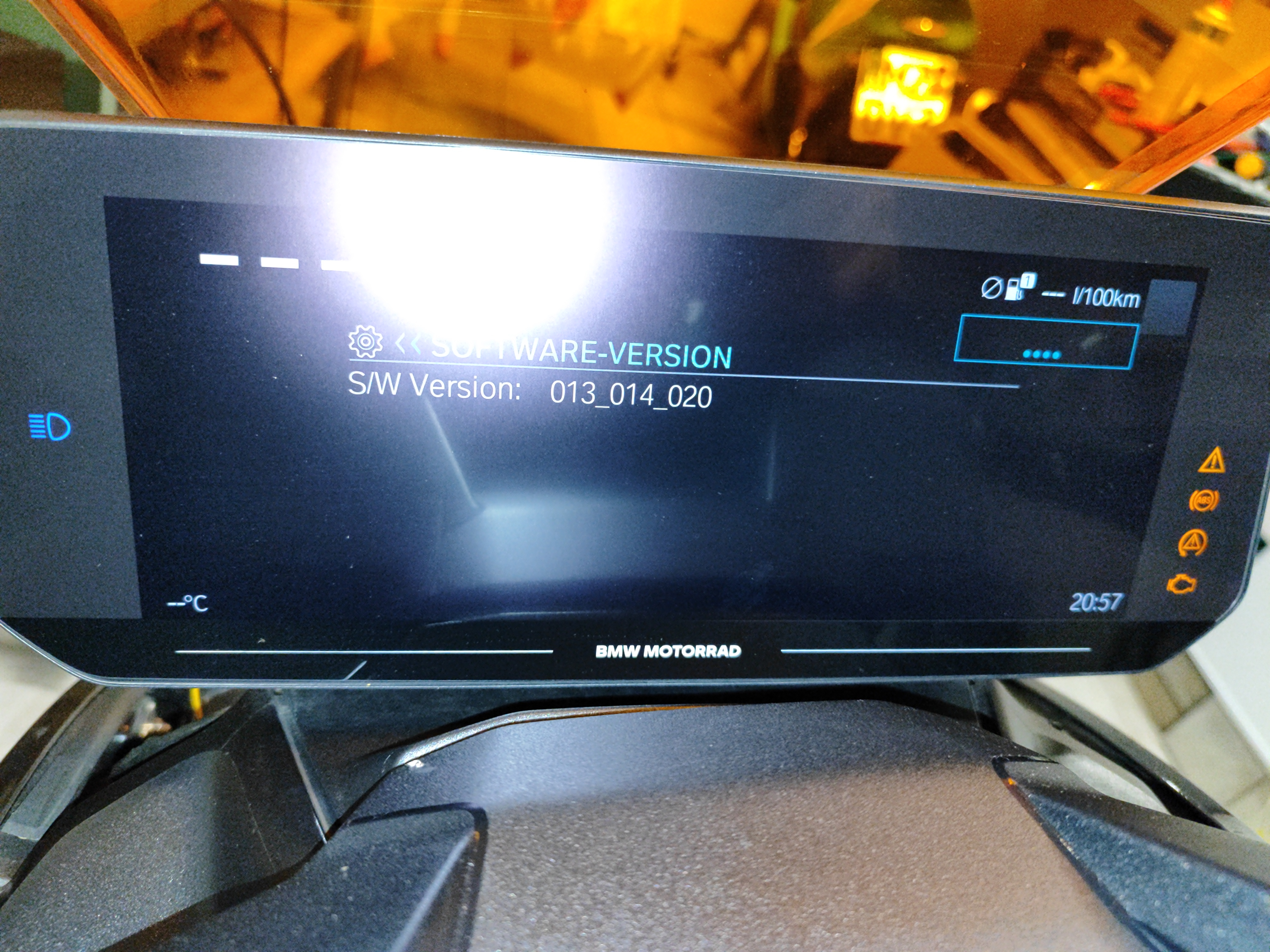 Erster Teilerfolg...Das Gerät zeigt schon mal die neuste Software, dumm nur das es denkt ein Verbrenner zu sein, wohl K1600 oder so ein Eimer.