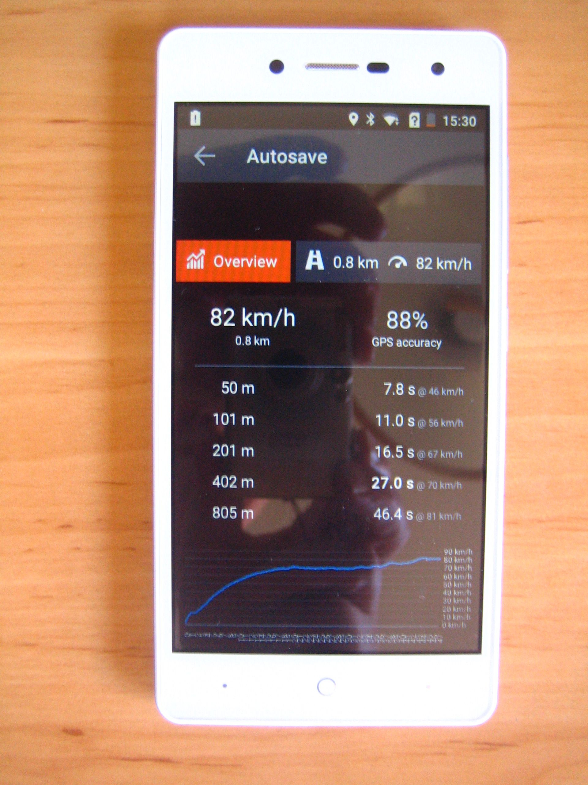 Ich habe heute die Drag Racer App ausprobiert. Eigentlich wollte ich nur die Höchstgeschwindigkeit ermitteln. Die App hat aber den ganzen Lauf aufgenommen: Der Tachovorlauf beträgt nur 3km/h. 4kW Motor DIY 72V 100Ah Akku. MQCON SSC72150 weniger empfehlenswert für die Beschleunigung. Aber, die Topspeed ist ganz okay. Der max. Batteriestrom ist auf 100A eingestellt. Gäbe ich noch ein paar mehr Ampere frei, ginge da noch Etwas....