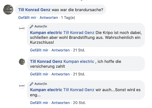 Kumpan Werkstatt abgebrannt.