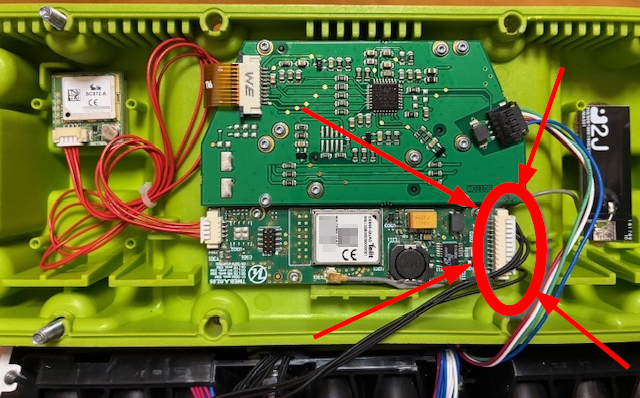 Anbei noch zwei Bilder, vielleicht hilft es jemanden beim Lokalisieren des korrekten Kabels welches abgesteckt werden sollte um die Selbstenladung zu minimieren bzw. unnötige Kommunikation ins Nirvana (oder wer weiß wo sonst hin) auszuschalten.