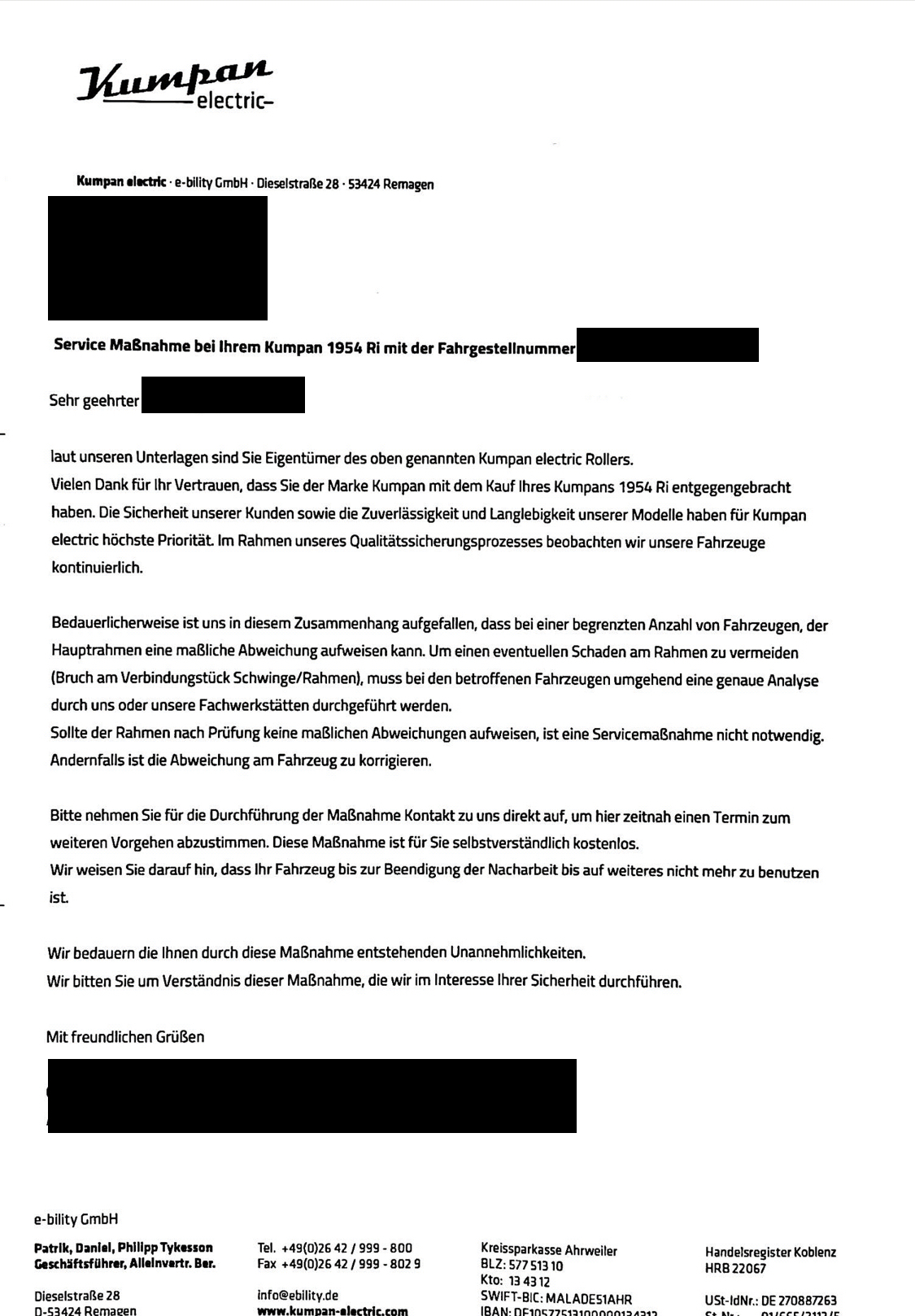Das Qualitätsmangement bei Kumpan hat wohl noch Luft nach oben.