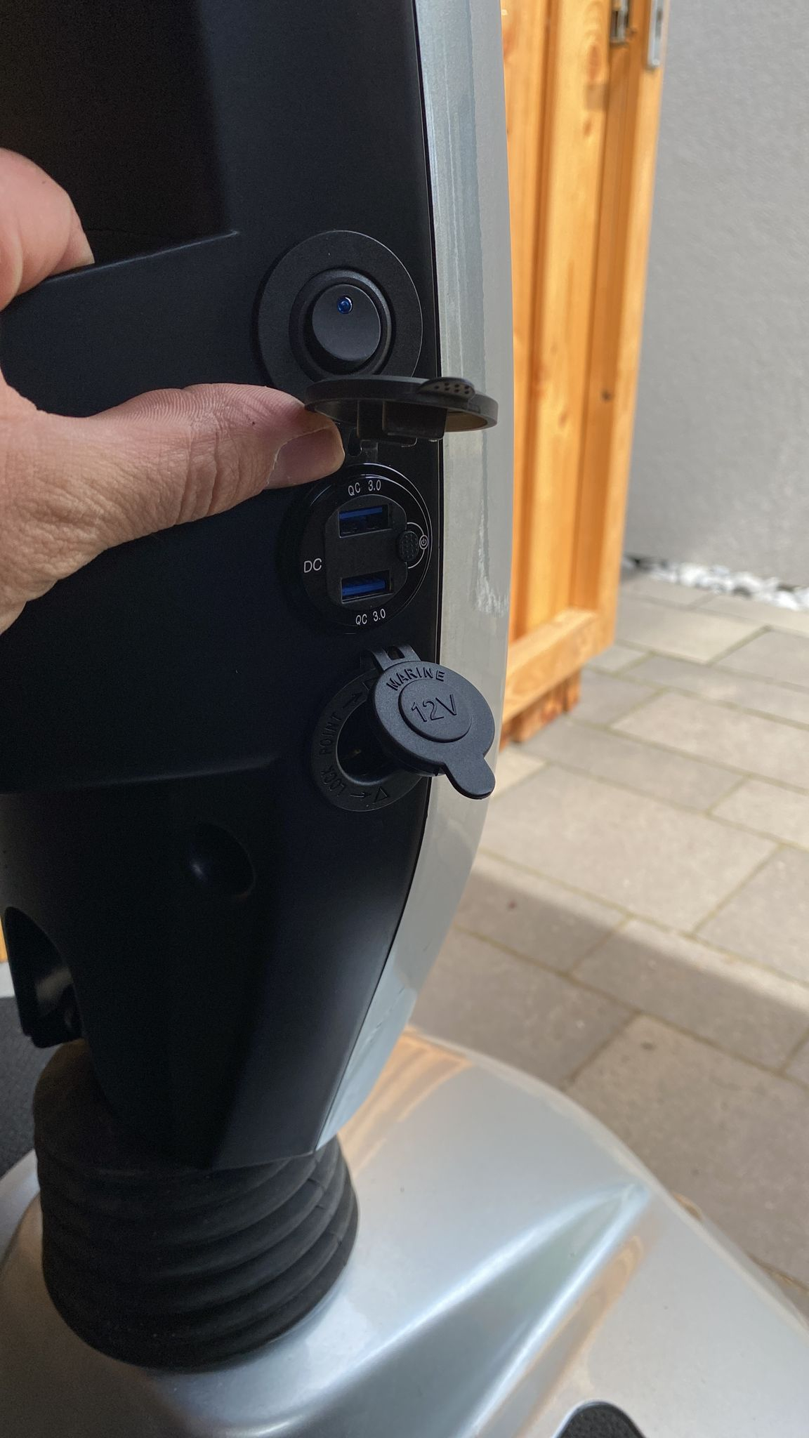 An den Steckern der Batterie 12V Abgreifen und eine KFZ Steckdose anschließen. Hier kann man dann ein ganz normales KFZ Aufladestecker verwenden. Hat dann auch die Schnellladefunktion.....