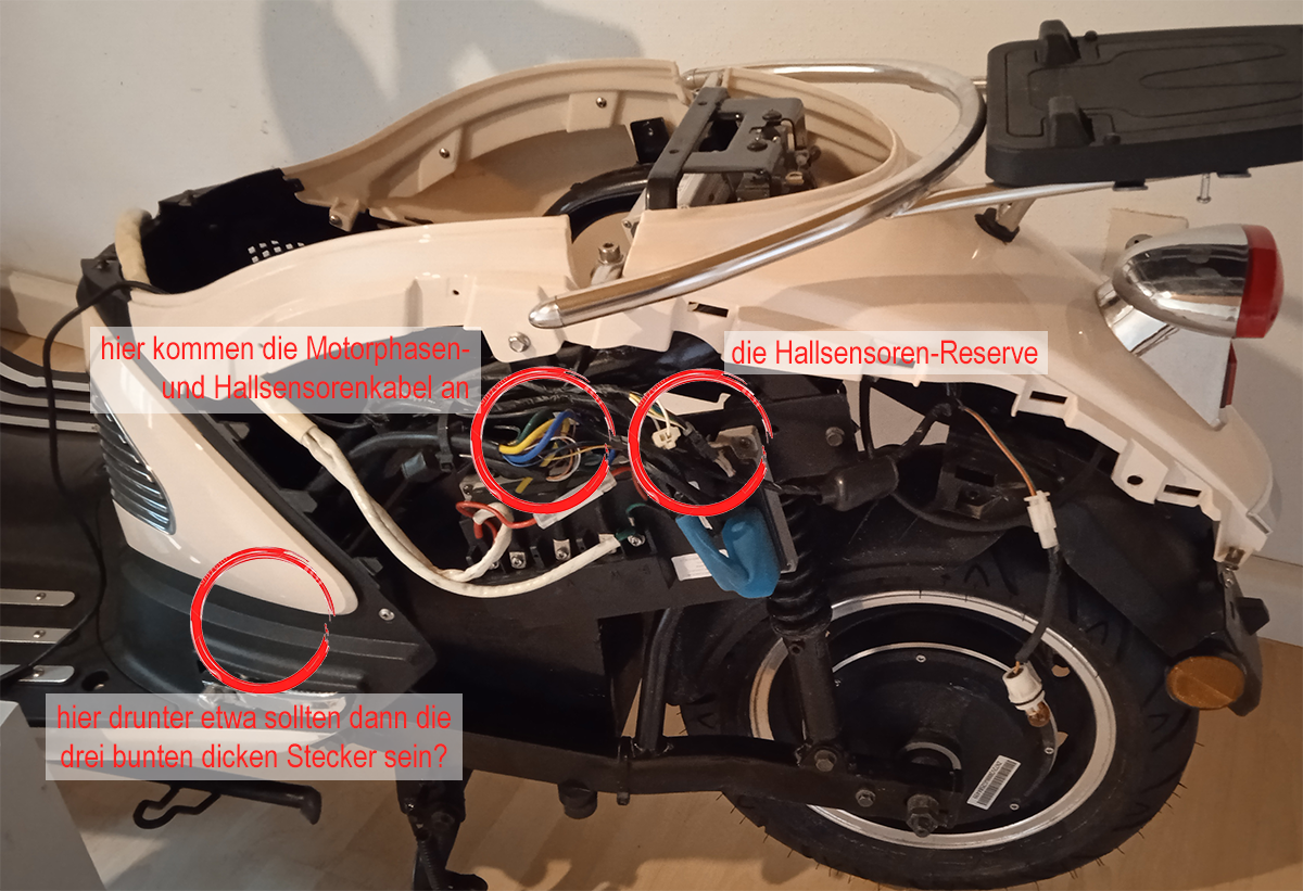 Vielen Dank auch für Deinen Hinweis zu den gesteckten Motorkabeln. Deine Beschreibung, insbesondere als Du das Reservepaar des Hallsensorensteckers erwähntest, kam mir sehr bekannt vor und ich machte mich soeben auf die Suche nach einem Foto, von dem ich wusste, dass ich es vor 2,5 Jahren gemacht hatte als mein Neptun seinen neuen Akku bekam. Dass die Motorkabel nochmal gesteckt sind, war mir komplett unbekannt und das Foto zeigt auch, warum: er war damals einfach nicht ganz nackig.