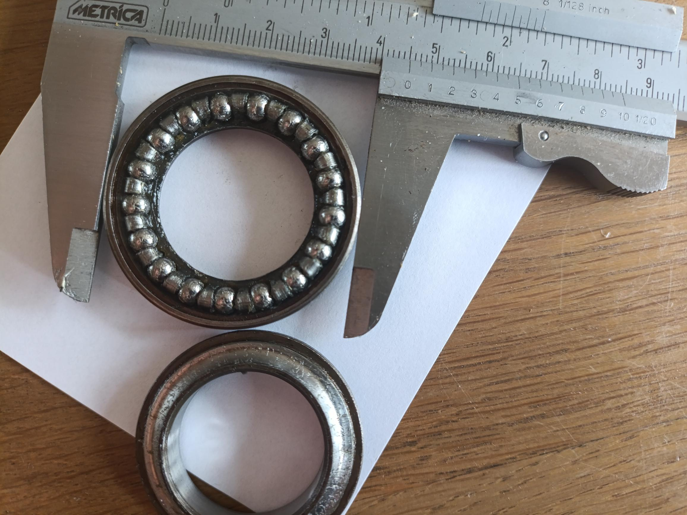 Hallo, beide Lenklager sind demontiert. Das untere entspricht der hier genannten Spezifikation Typ 32007 35x62x18 mm. Ich würde auch gern das obere Lager wechseln. Möglichst das Lager mit Käfig sowie obere und untere Schale. Die untere Aufnahme (untere Lagerschale) hat einen Außendurchmesser von 45mm und einen Innendurchmesser von 28,5mm. Die obere Lagerschale hat einen Außendurchmesser von ca. 39,8mm und einen Innendurchmesser von 26mm. Siehe Bilder. Kann mir jemand den Typ nennen oder die Bestelldaten? Vielen Dank im Voraus