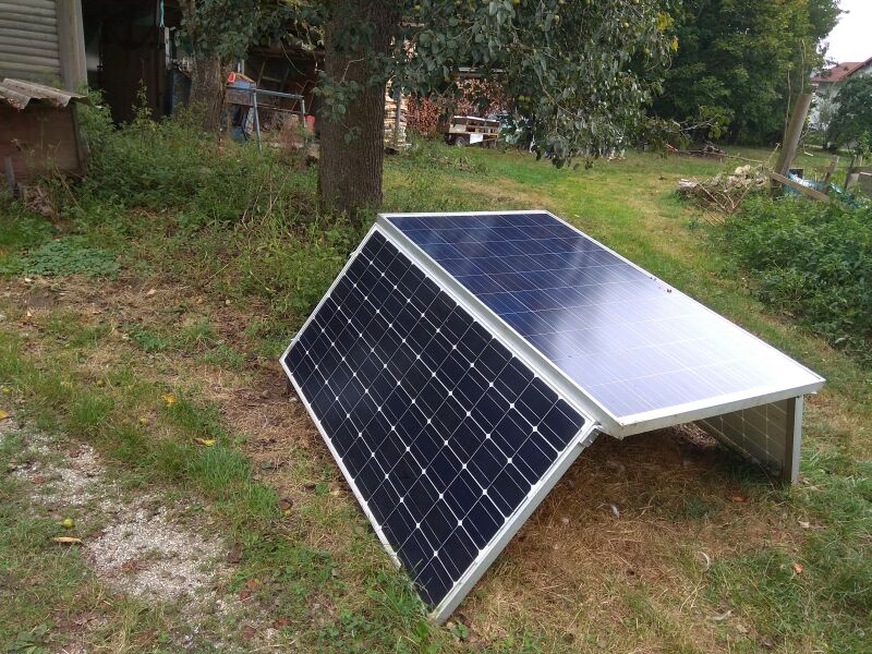 Sind 3 Platen mit 245. 230 Wp die Miteinander verschraubt sind . Die Ausrichtung ist Ost - West so habe ich Tagsüber immer um 200 Watt