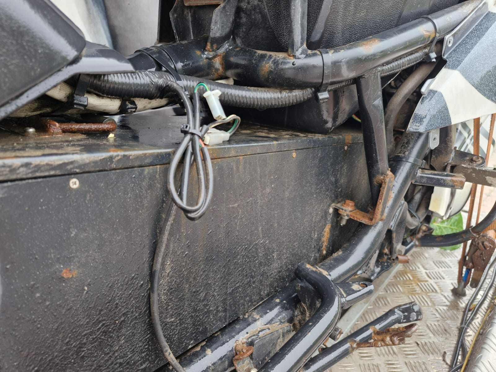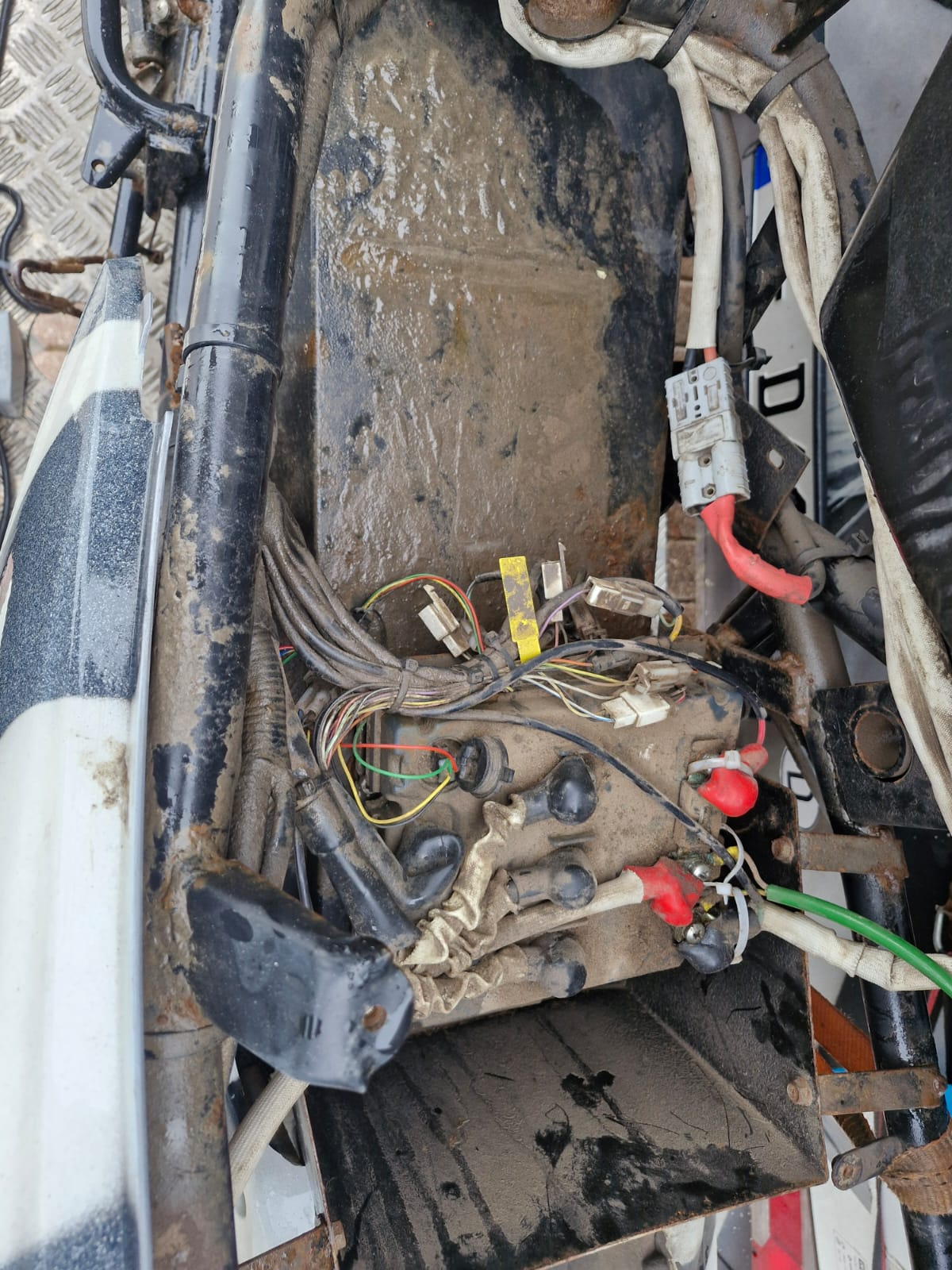 Das ist ja mal Heftig . Als erstes gleich den Akku abstecken ( Grauer Stecker mit Schwarz / Rot Kabel ) , dann alles von den "Schönen Kanadischen Straßenstaub " befreien . Spannung am Akkustecker messen . Würde versuchen mit einer Externen Stromquelle den Akku zuladen . Ich habe dazu ein Solarpanel mit MPPT Regler so 300 -400 Watt . Die können dann ein paar Tage arbeiten . Staub , Wasser , Strom das ist keine Gute Mischung