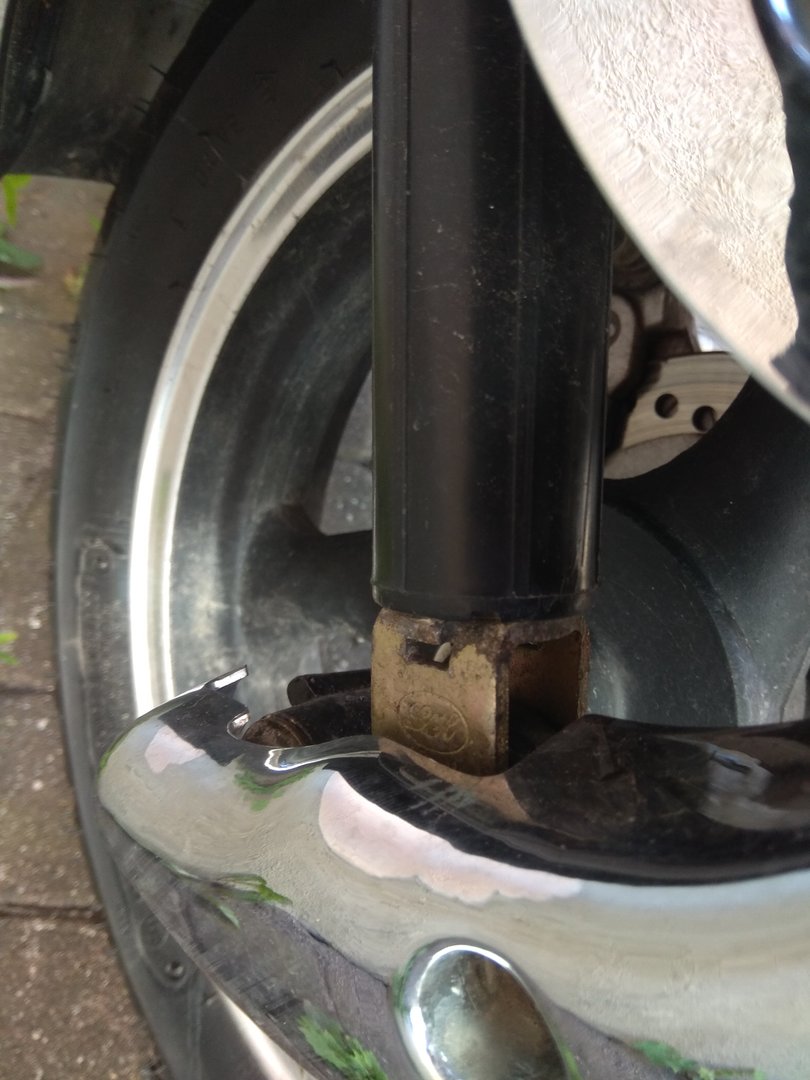 Das Problem mit dem Windschild habe ich mit gekonterten Muttern und Locktite in den Griff bekommen, jetzt klappert nur noch das billige Topcase beim Kopfsteinpflaster fahren, aber was solls. Ein Stueck "Chrom"verkleidung am Vorderrad wurde sproede und ist durch die Erschuetterungen abgebrochen, dies ist aber nur ein Schoenheitsfehler. Einmal habe ich den Roller auch versehentlich umgeworfen, d.h. ein paar Kratzer links hat er jetzt auch