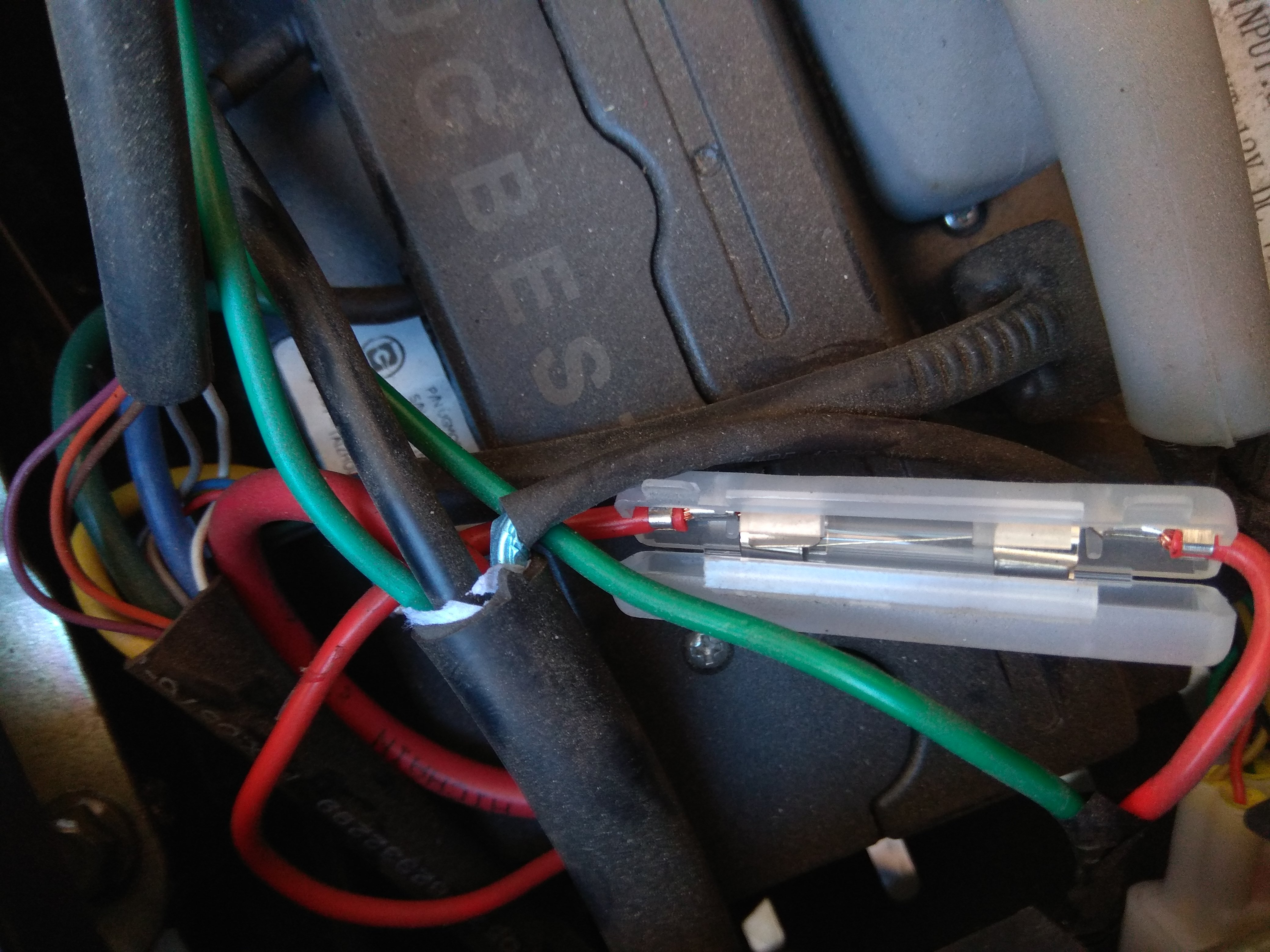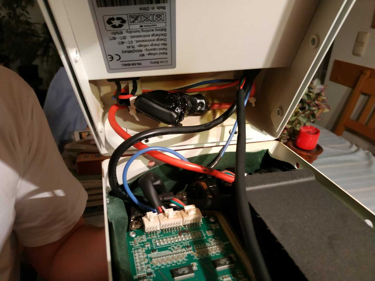 - Aufschrauben der Batterie zeigt, dass der Schrumpfschlauch mit den "Steuerkabeln" der Batterie mit der Sicherung verschmolzen ist.