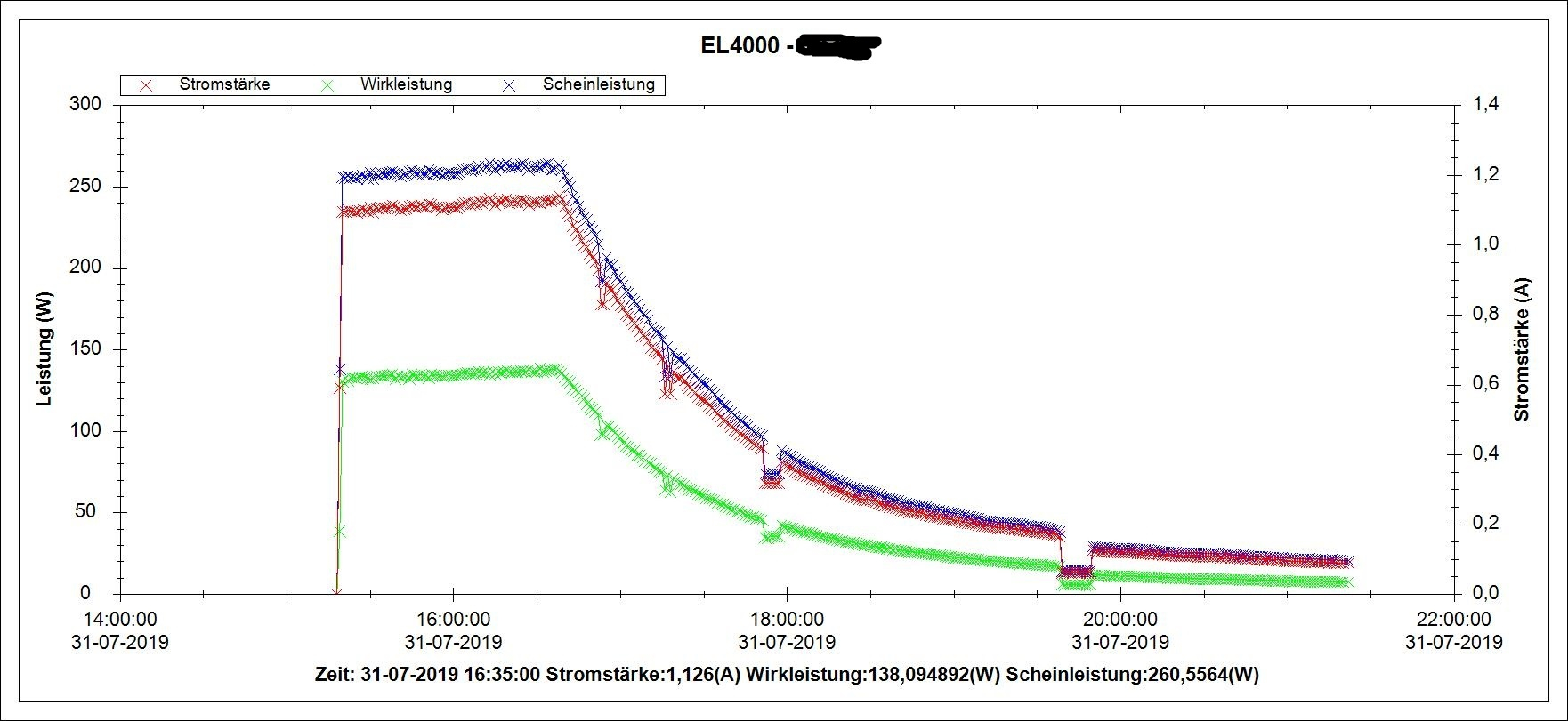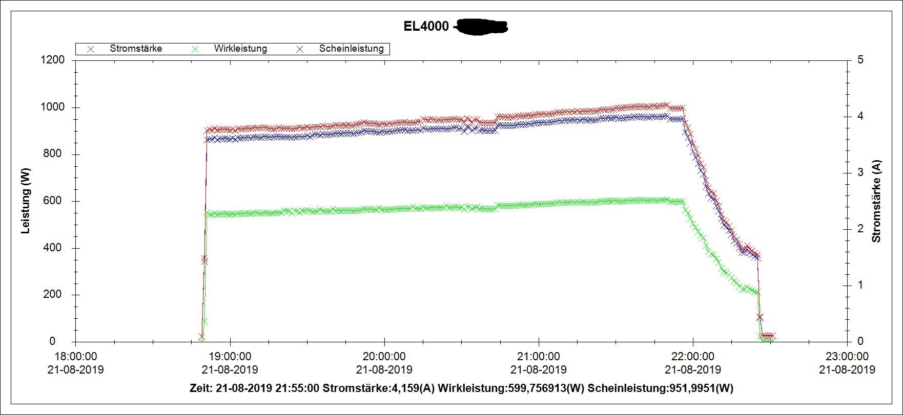 Die Kurven sind mit "Voltcraft Energy Logger 4000" erstellt worden. Das Gerät finde ich schon sehr hilfreich, die Software ist allerdings unterirdisch und zumindest anfangs sehr gewöhnungsbedürftig. Aber das ist eine andere Geschichte ...