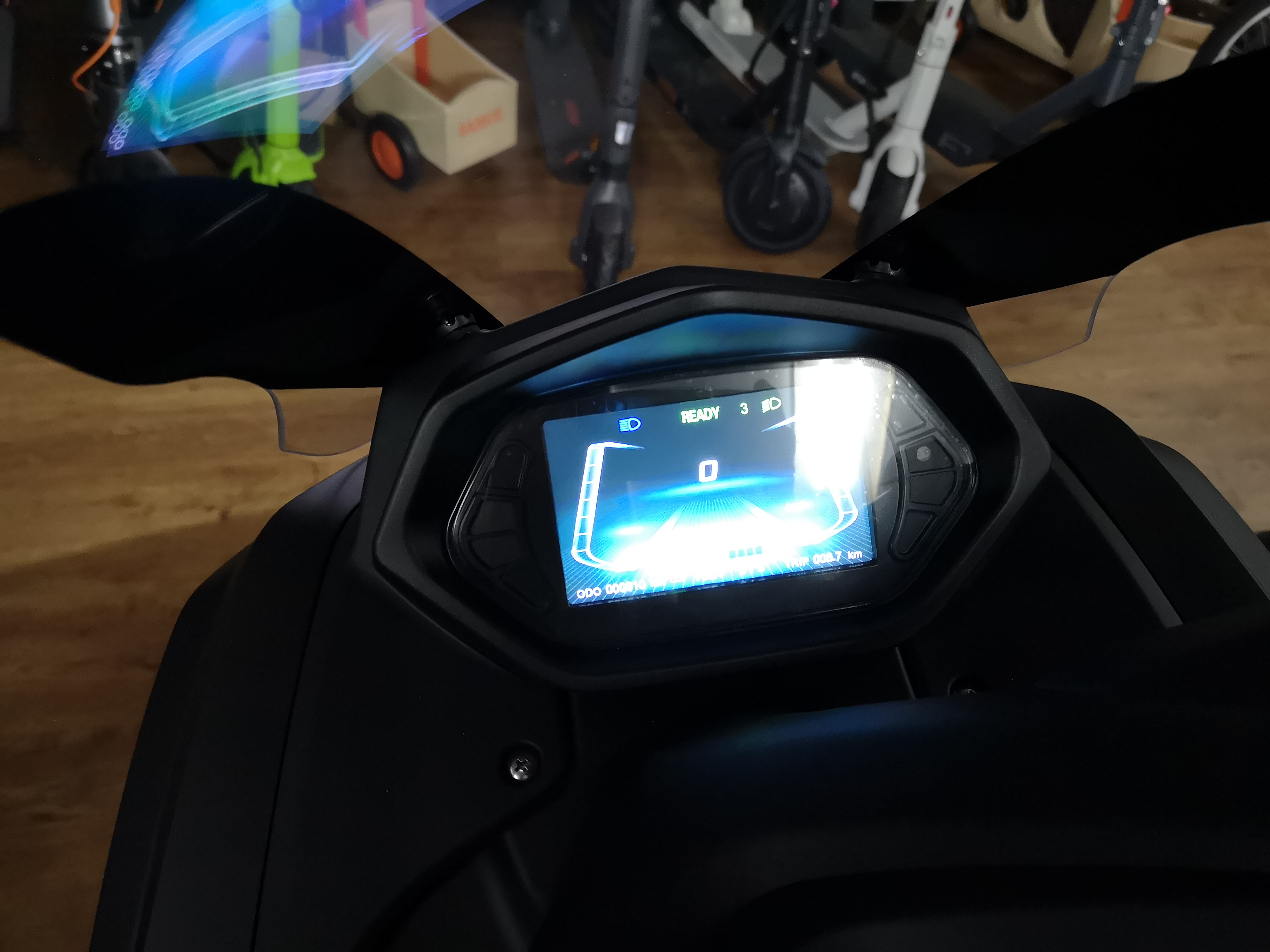 D. h. Wenn Du nach dem Start des Rollers sechs mal schnell hintereinander mit Lichthupe das Fernlicht anmachst, geht der Tageskilometerstand auf Null. In China macht das offenbar Niemand im normalen Straßenverkehr, zumindest nicht bei Fahrtantritt.