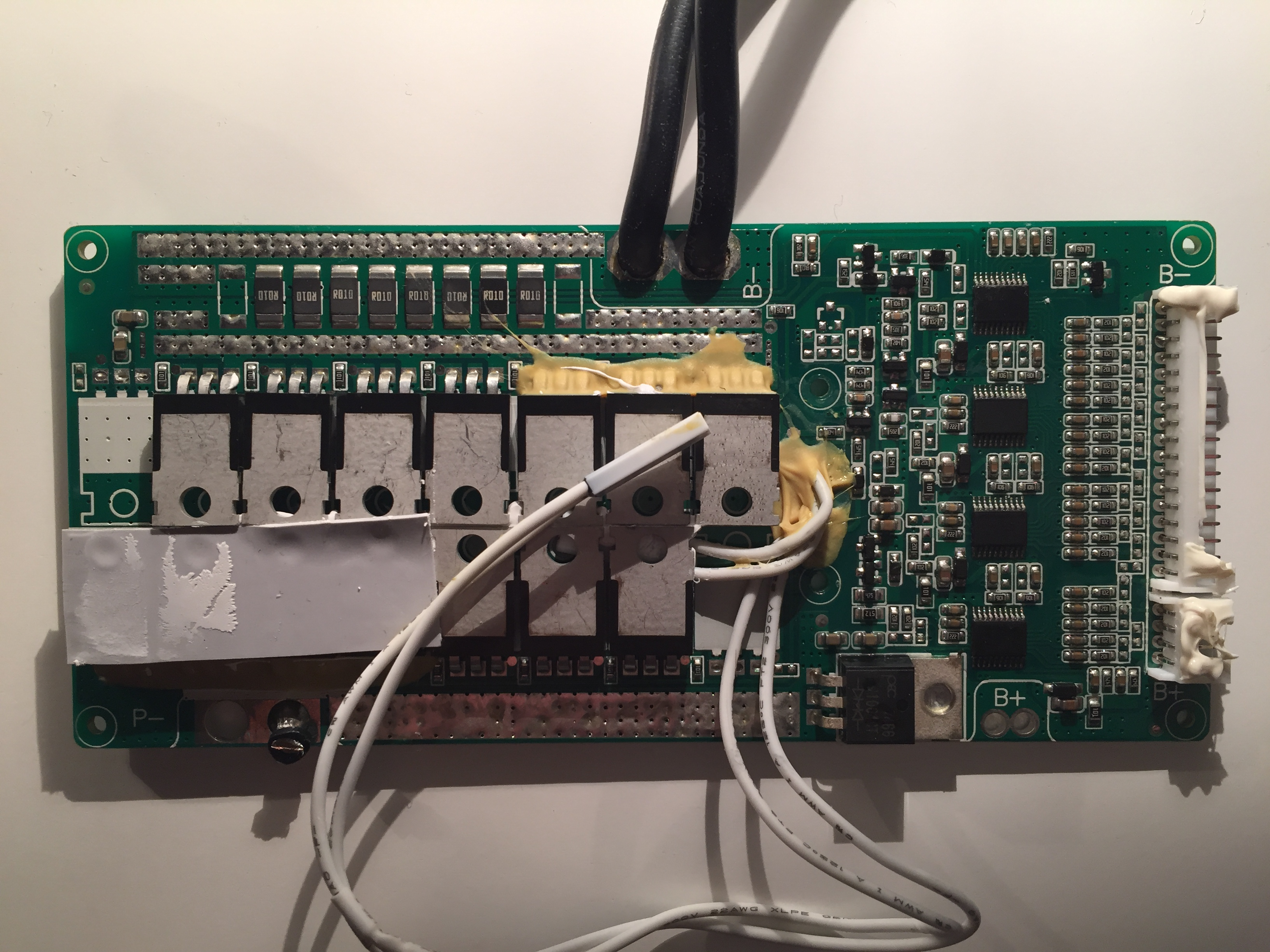 Wenn das stimmt, solltet ihr noch mal über eine Parallelschaltung und die Ladetipps von sowas nachdenken. Das BMS kann nur over/undervoltage der einzelnen Zellen erkennen und auf Overcurrent reagieren, Die zwei Thermofühler sind lächerlich. Einer ist unter die FETs geklemmt, der andere baumelt irgendwo locker zwischen den Zellen.