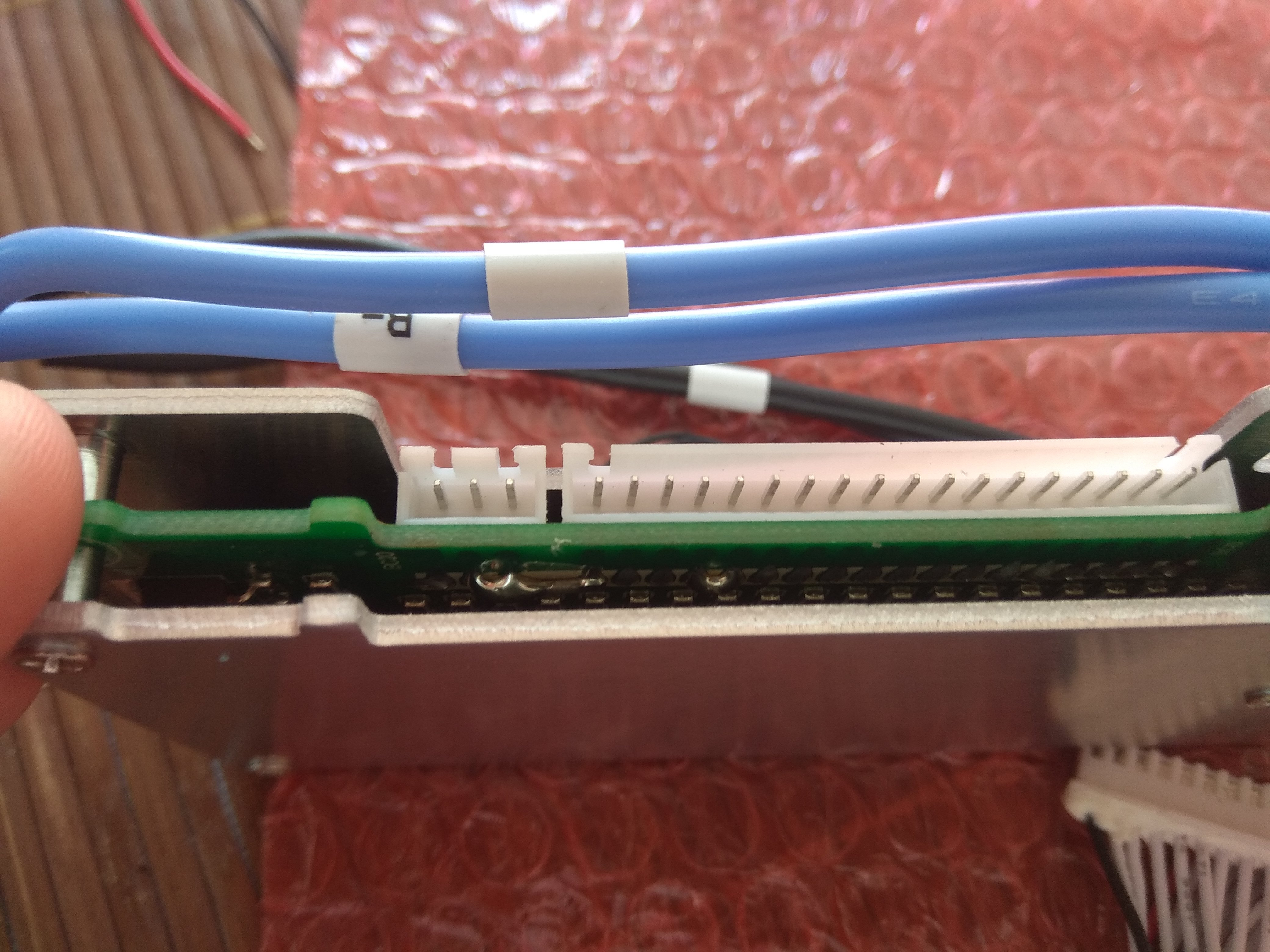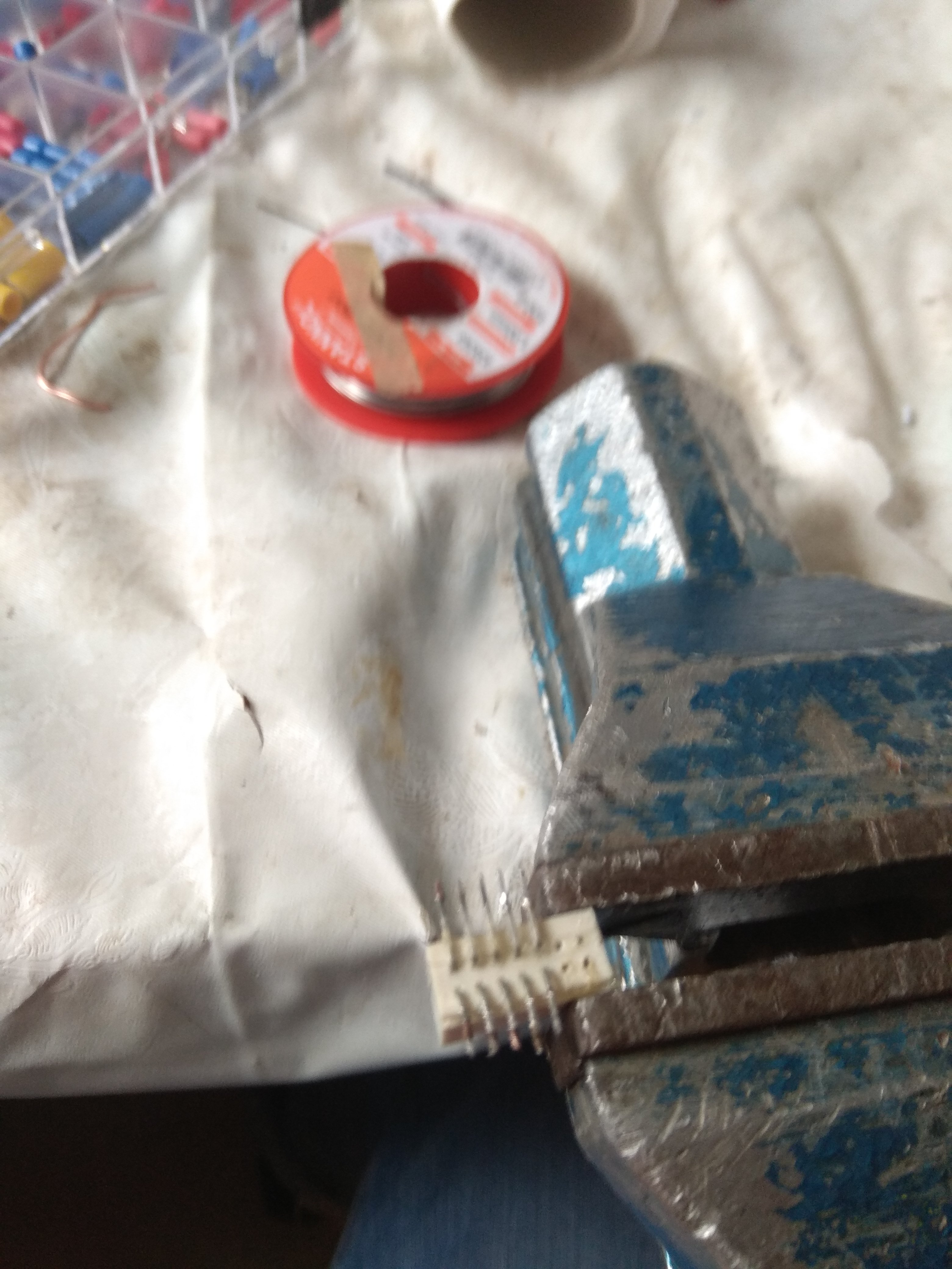zweireihiger Stecker vom alten BMS abgeloetet, dann PINs anders herum reingesteckt