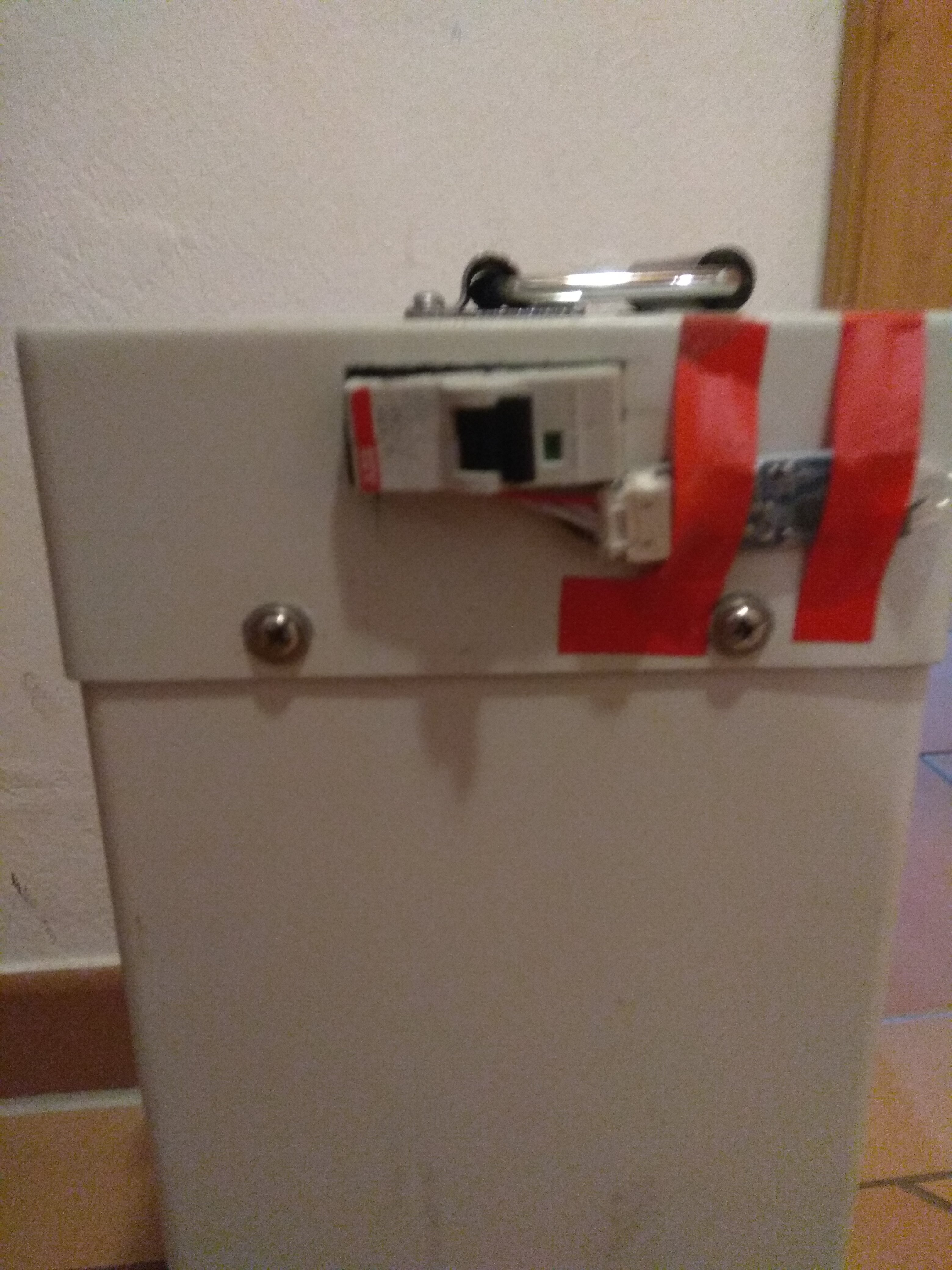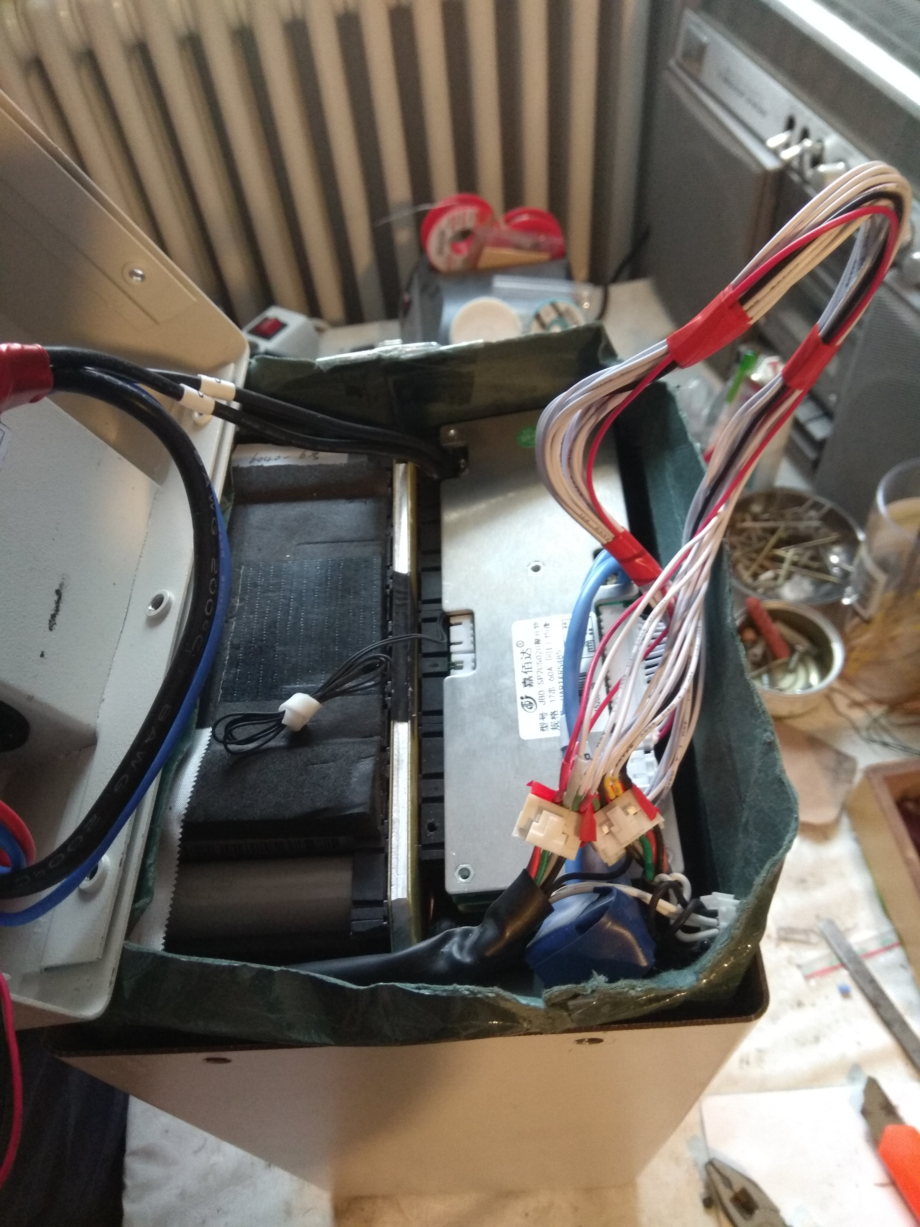 • Das alte BMS hatte seperate Kanaele fuer Laden und Entladen, was das neue nicht hat. Ausserdem hatte das alte die Spannung blockiert, solange nicht ein PIN verbunden wurde. Das neue BMS wird also immer Spannung nach aussen fuehren, beim alten musste es freigeschalten werden. Der Chogiri Stecker ist beruehrungssicher, der Ladestecker allerdings nicht. Da muss ich mir dann eben angewoehnen, immer die Abdeckung draufzumachen. Allerdings habe ich ja schon eine ABB Sicherung verbaut und kann damit die Batterie spannungsfrei schalten.