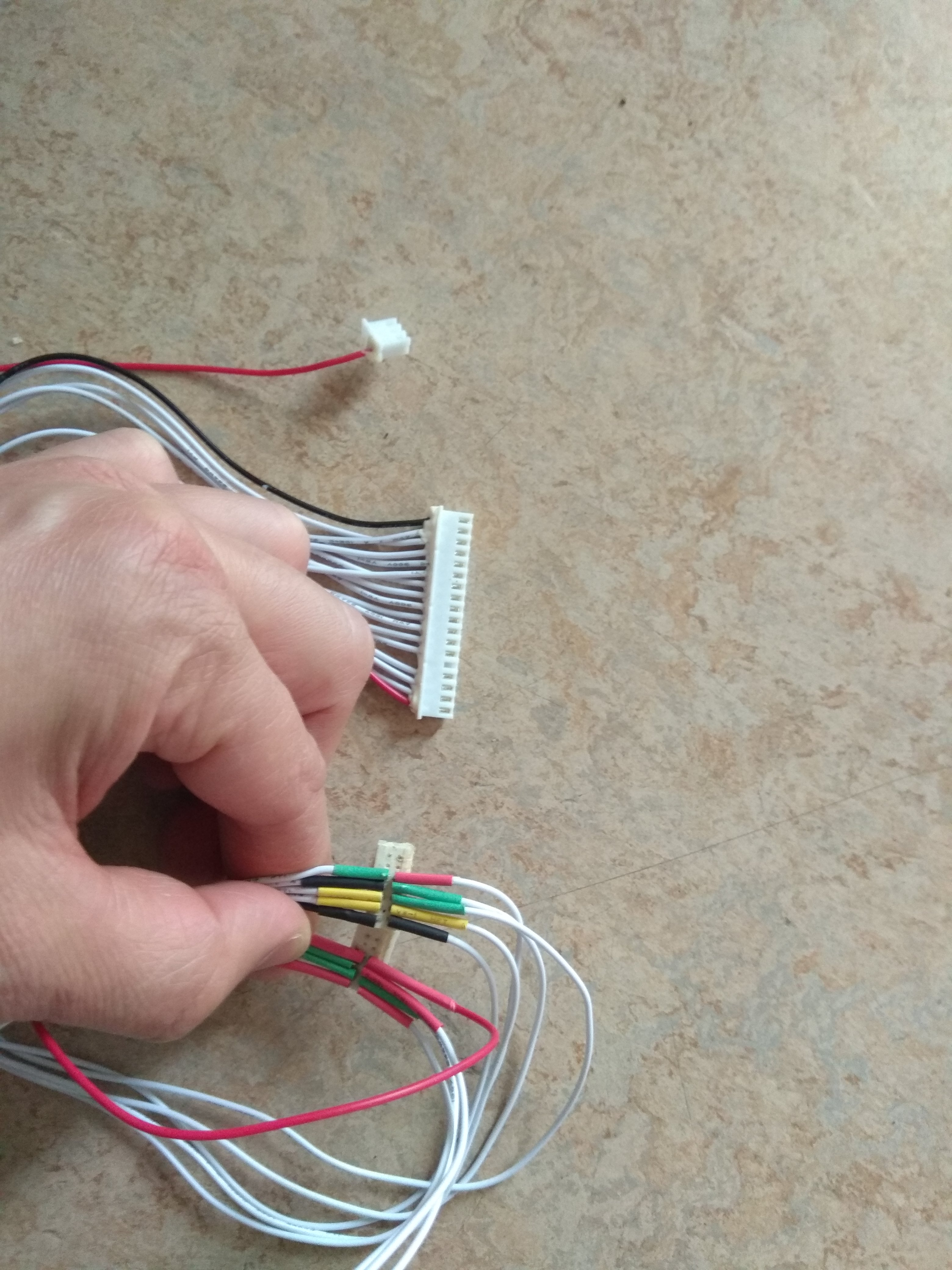 Ich zaehle 21 PINs verteilt auf 2 Stecker mit 3 + 18 PINs. Es werden aber nicht alle 21 genutzt. Von links gezaehlt sind PIN 2,3,4 und PIN 7,8 zusammengeloetet und in den Steckern fehlen PIN 2,3 (d.h. der 3er Stecker hat nur ein Kabel) bzw. beim 18er Stecker der 5te von links. Somit stimmen die "ueberbrueckten" Pins mit den beim Stecker ausgelassenen Kabeln ueberein und insgesamt werden nur 18 verwendet, wie bei einem 17s BMS erwartet. Das Verkabelungsdiagramm ist auch eindeutig, jetzt muss ich nur noch ausmessen, welche der Kaebelchen beim Trinity Akku welcher Zelle entsprechen. Welcher PIN welche Zelle abgreift, laesst sich aber ja leicht mit dem Multimeter ausmessen.