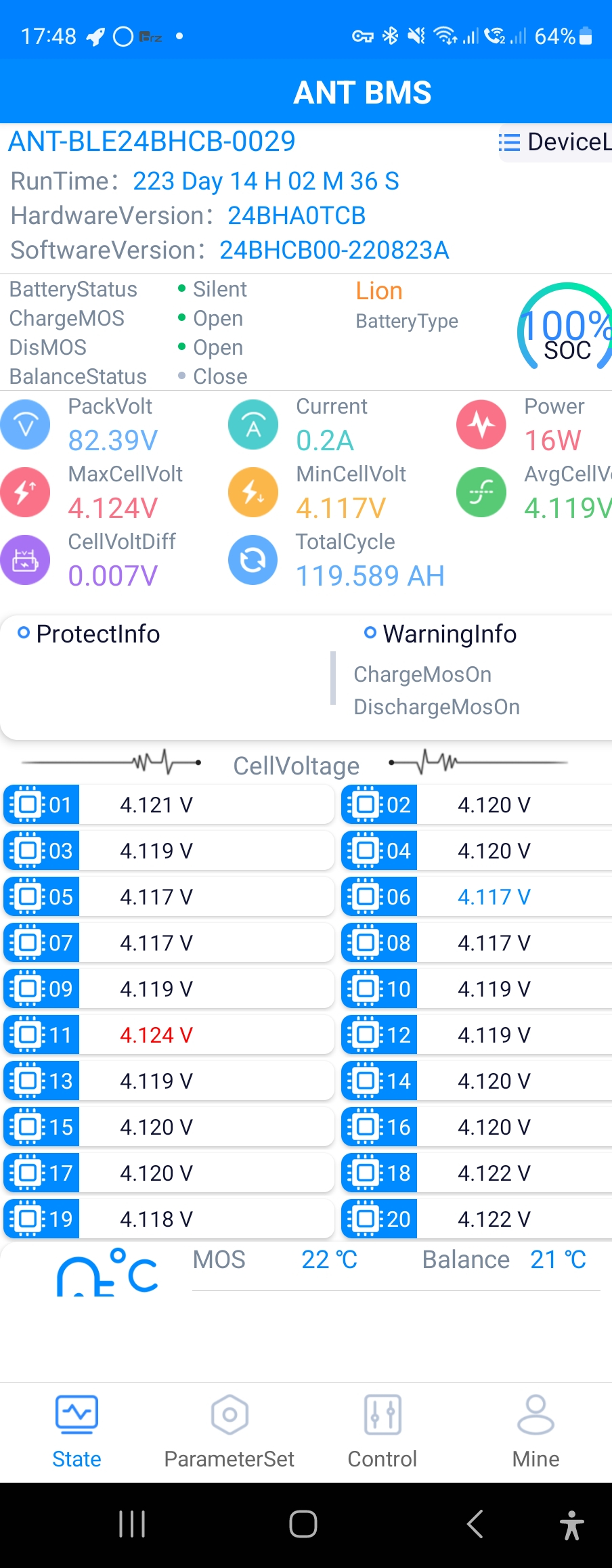 für die Verbindung wird tatsächlich die App des Herstellers ANT BMS benötigt, mit anderen Apps wollte das BMS nicht wirklich reden. Im Playstore findet man die App nicht aber wer sich ein BMS des Herstellers kauft bekommt sie wohl mit dazu - alternativ lootet man mal ein wenig in den tieferen Regionen des Internets und/oder nervt die üblichen Suchmaschinen ein wenig hartnäckiger