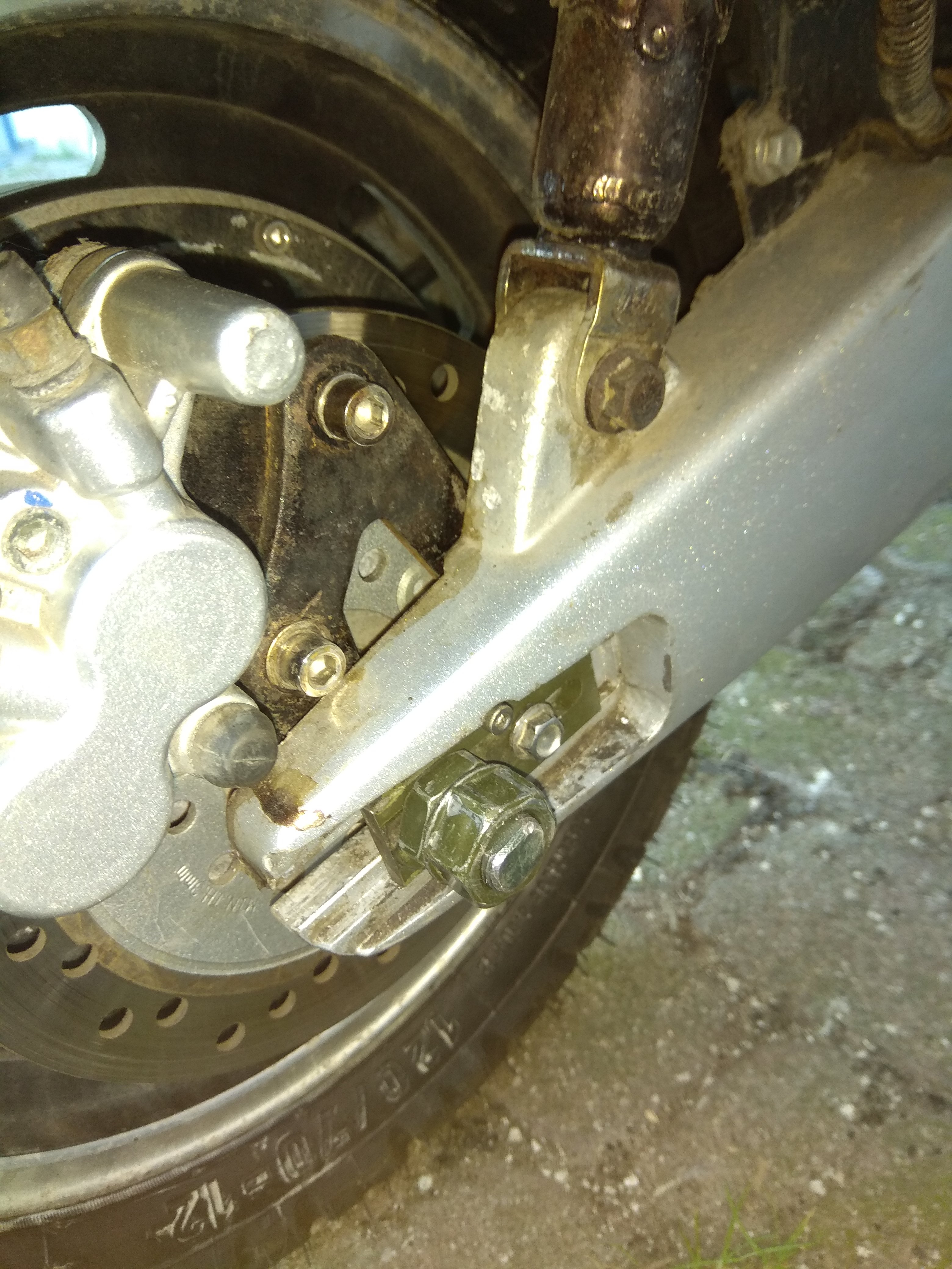 Ich denke, du meinst mit "Bremsscheibe" (ist am Rad fest und dreht sich mit) das Gegenteil, nämlich den Bremssattel, welcher an der Schwinge befestigt sein muss. Und scheinbar muss der Halter des Bremssattels unter anderem mit dieser ominösen Schraube befestigt werden.