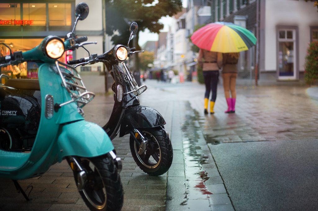 1. NOVEMBER. Pünktlich trifft der gute deutsche Regen bei mausgrauem Wetter ein. Für viele heißt dies bereits, dass der schicke Roller nun in der Garage eingemottet wird. Andere widerum sind auf das Fahrzeug angewiesen und frieren sich bei diesem Wetter die Finger blau. Kalte Hände, nasse Füße oder sogar unterkühlte Nieren - das möchte keiner. Doch was kann man machen, um warm und sicher bei diesem Wetter fahren zu können?Elektroroller für jeden Geldbeutel!