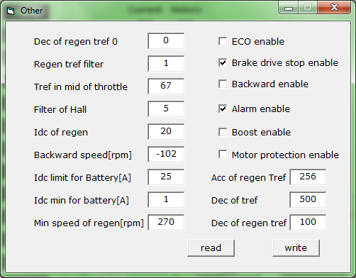 Ich habe Zugang zur Service-Software von UG-Best (Hersteller eurer Uranuse). Also der AD-tech Controler (ZN60V3000WA programmierbarer Sinus-Controler) sollte auch bei euch verbaut sein. Dort kann man per serieller Schnittstelle noch bissel mehr über die Service-SW einstellen , als zb bei Kelly soweit ich informiert bin. Jedenfalls ist auch eine Diagnose-Funktion implementiert, wo man alle wichtigen Werte direkt im Betrieb anzeigen lassen kann.