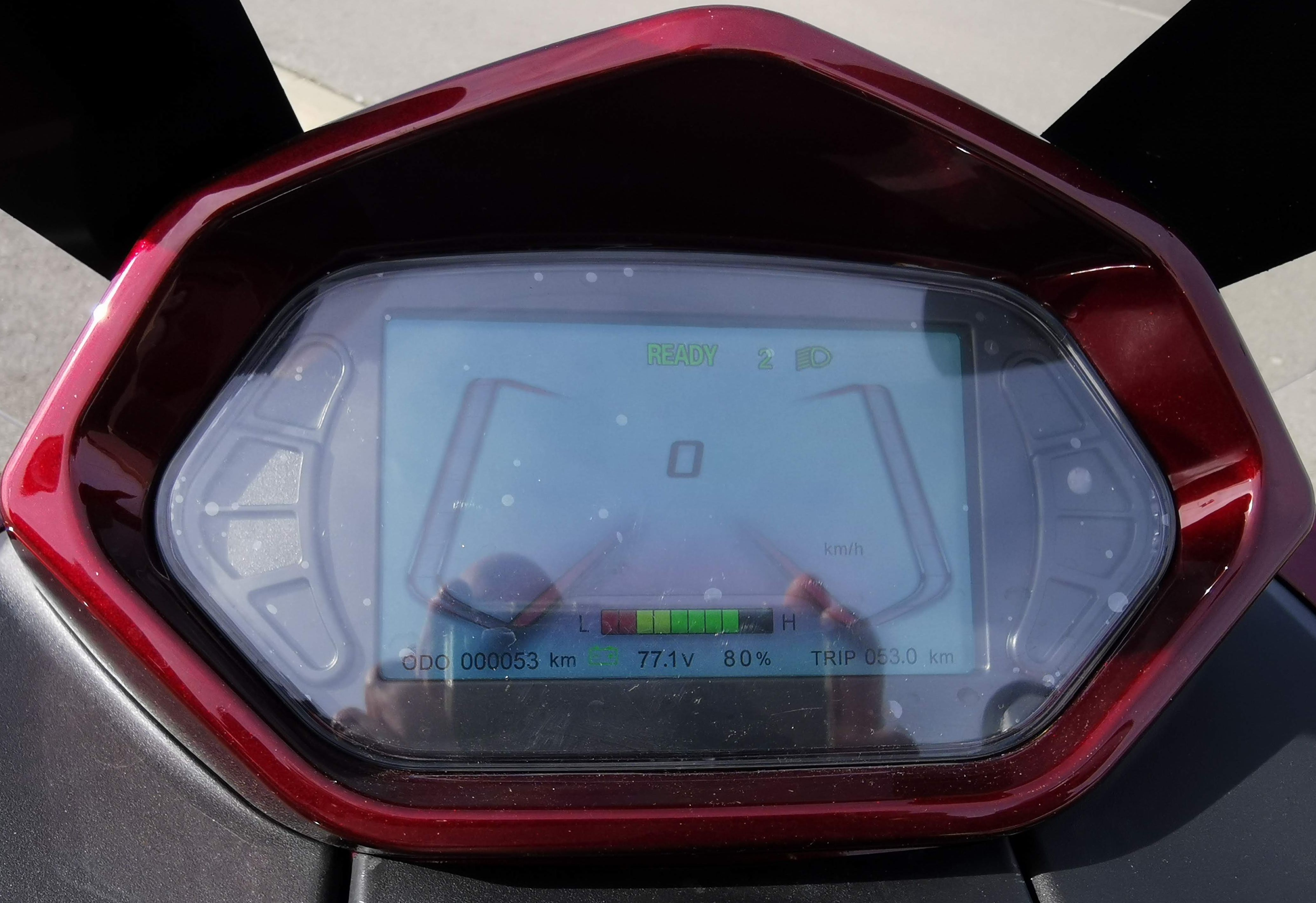 Natürlich kein ABS und ASR, nur CBS. Gut, dass der (einstellbare) Controller so justiert wurde, dass nicht ab Null, sondern erst ab 5-10 km/h das volle Drehmoment wirkt, je nach Fahrstufe. Bis an die Grenzen habe ich das Kurvenverhalten nicht getestet, weil neues Mopped also auch neue Reifen, sowie meine (noch) Roller Unerfahrenheit. Bis hierhin habe ich aber nichts zu bemängeln. Auch das Einlenkverhalten ist aus meiner Sicht ok für einen Roller. Lenkkopflager passt soweit.