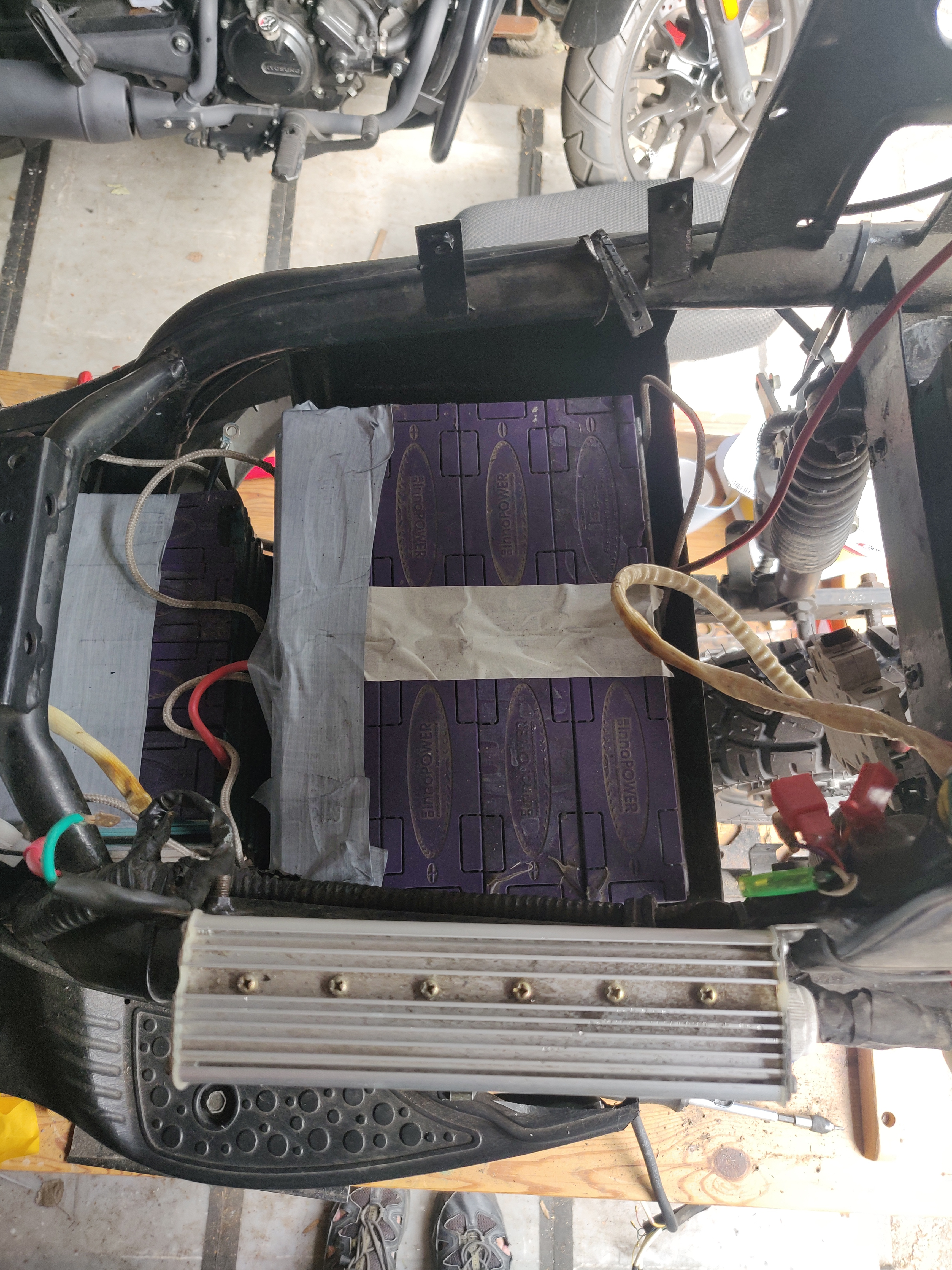 Gestern sind die 20 S aus Roller 2 raus gekommen, der Roller 1 mit 48 V braucht ja nur 16S. Heute kam alles in das Chassis, nun wird ab Kilometer 4410 mit Lithium gefahren. Coulometer an Bord, muss nur noch ein Ladegerät passend einstellen.