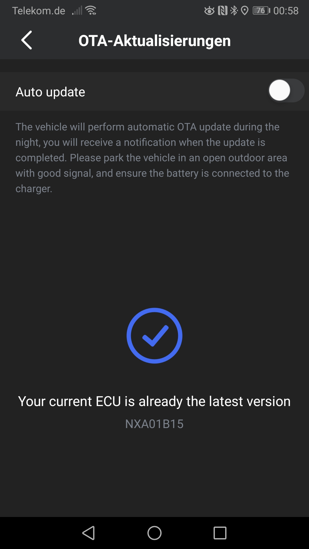 Es gibt für Android eine neue App Version für Android (4.4.8). Neu ist der ECU Update Prozess mit einem Knopfdruck und eine Automatische Updatefunktion die Nachts durchgeführt wird.