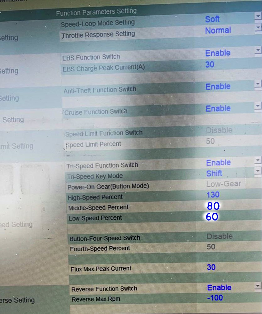 First setting : Mode 3 65kmh on the screen (no gps test)
