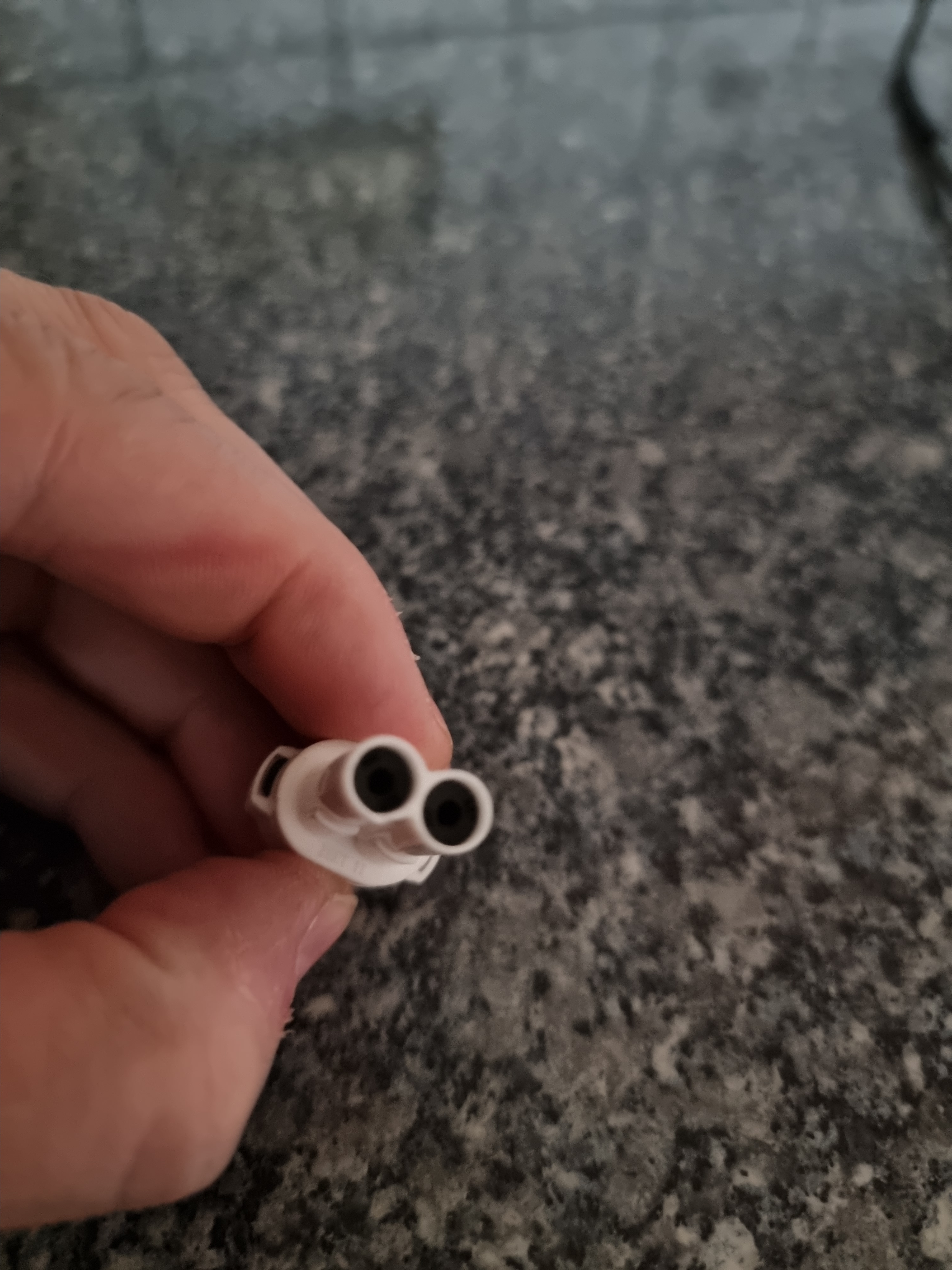 Vom Stecker weg (also dass Gegenstück vom abgerissenen Stecker) geht allerdings ein schwarzes und ein weißes Kabel weg.