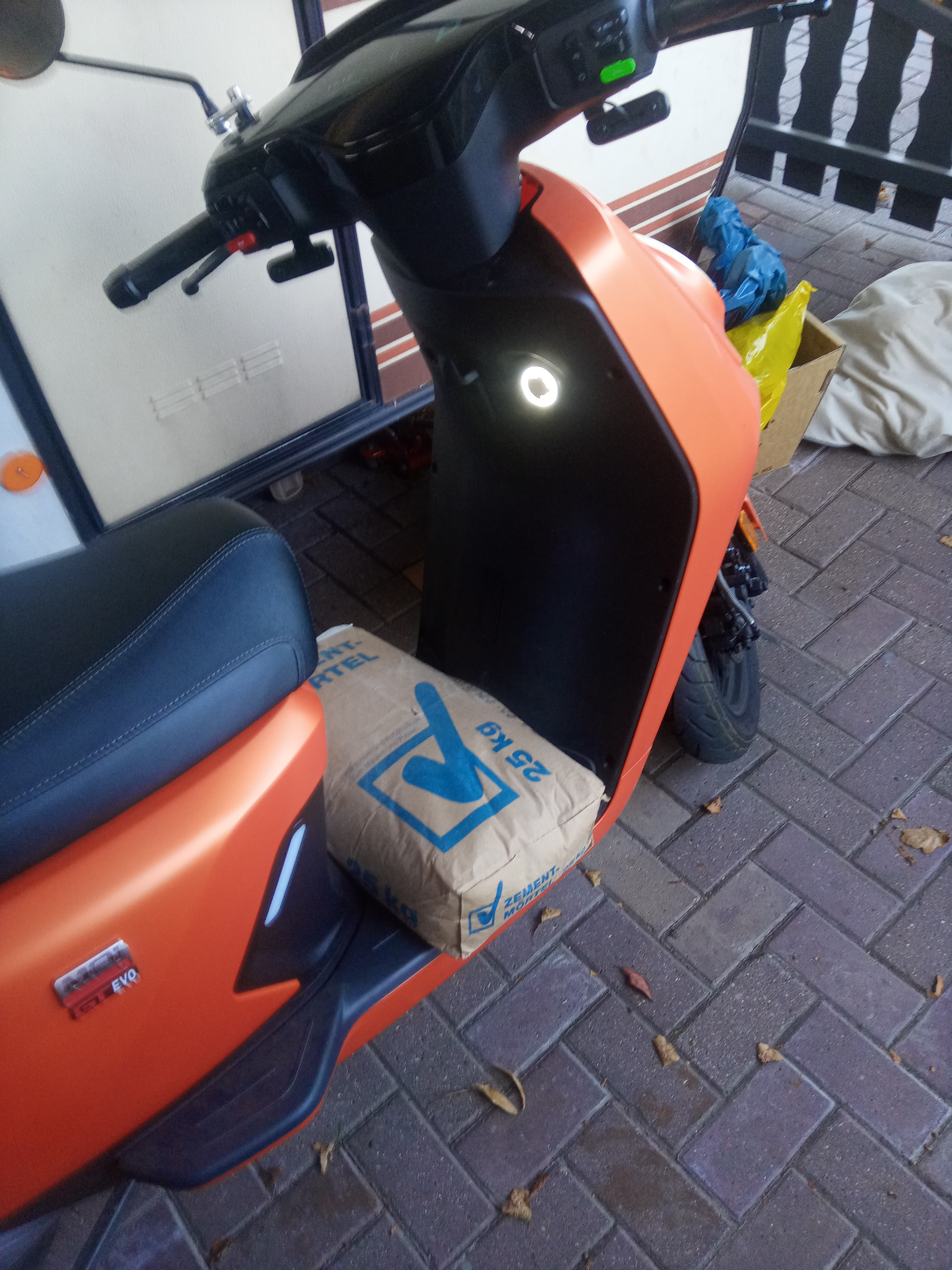 Also ich hab heute 2 mal 25kg Mörtel mit geholt, bin auch angekommen. Das Zusatzgewicht im Fussraum hat das Lenkerflattern noch erhöht.