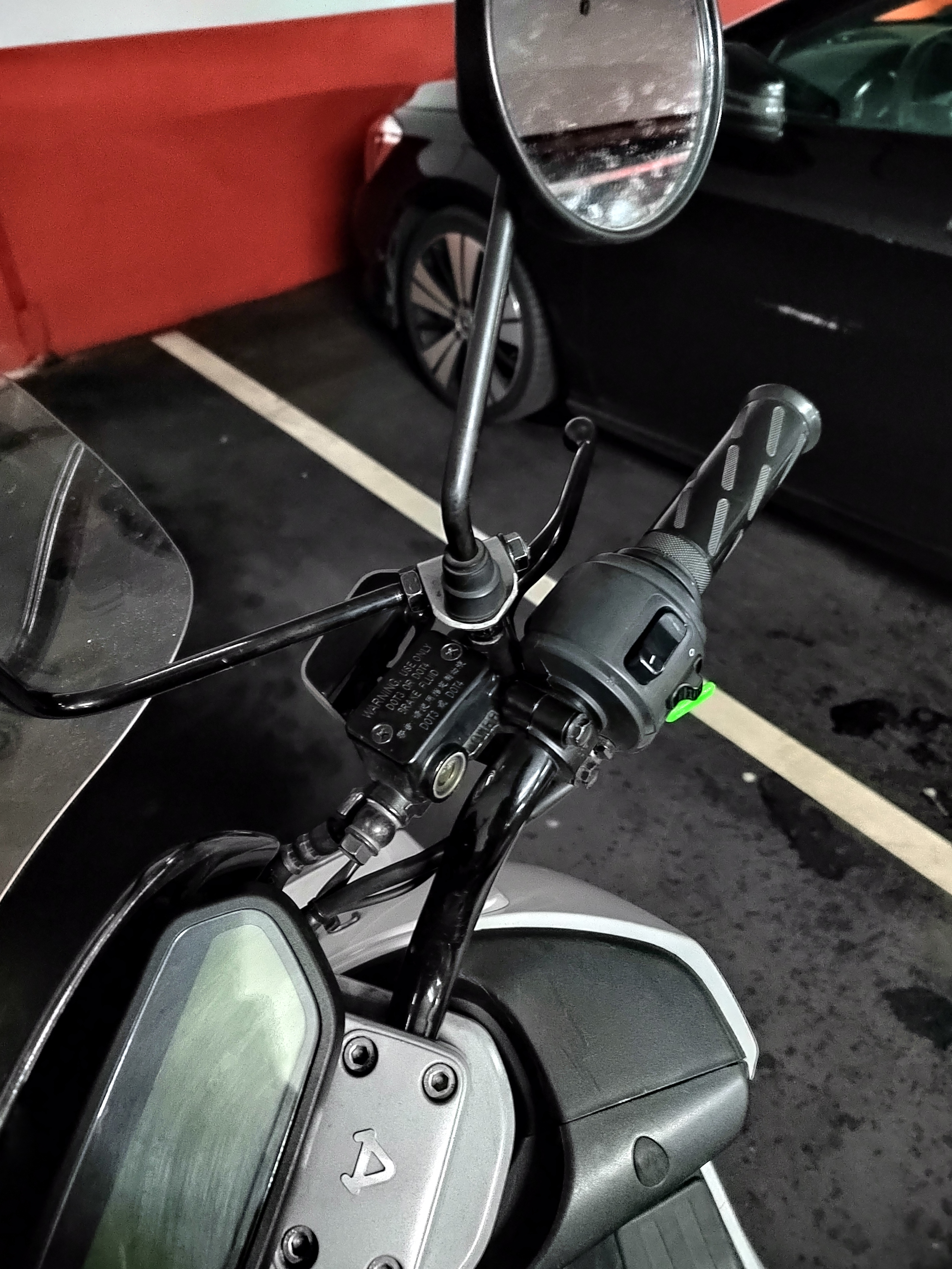 Ich habe am Spiegel Abstandsbolzen, um die höher zu setzen. Daher gibt es mit den Bremsflüssigkeitsbehältern kein Platzproblem. Sonst müsste ich die Ecken genauer nachschleifen.