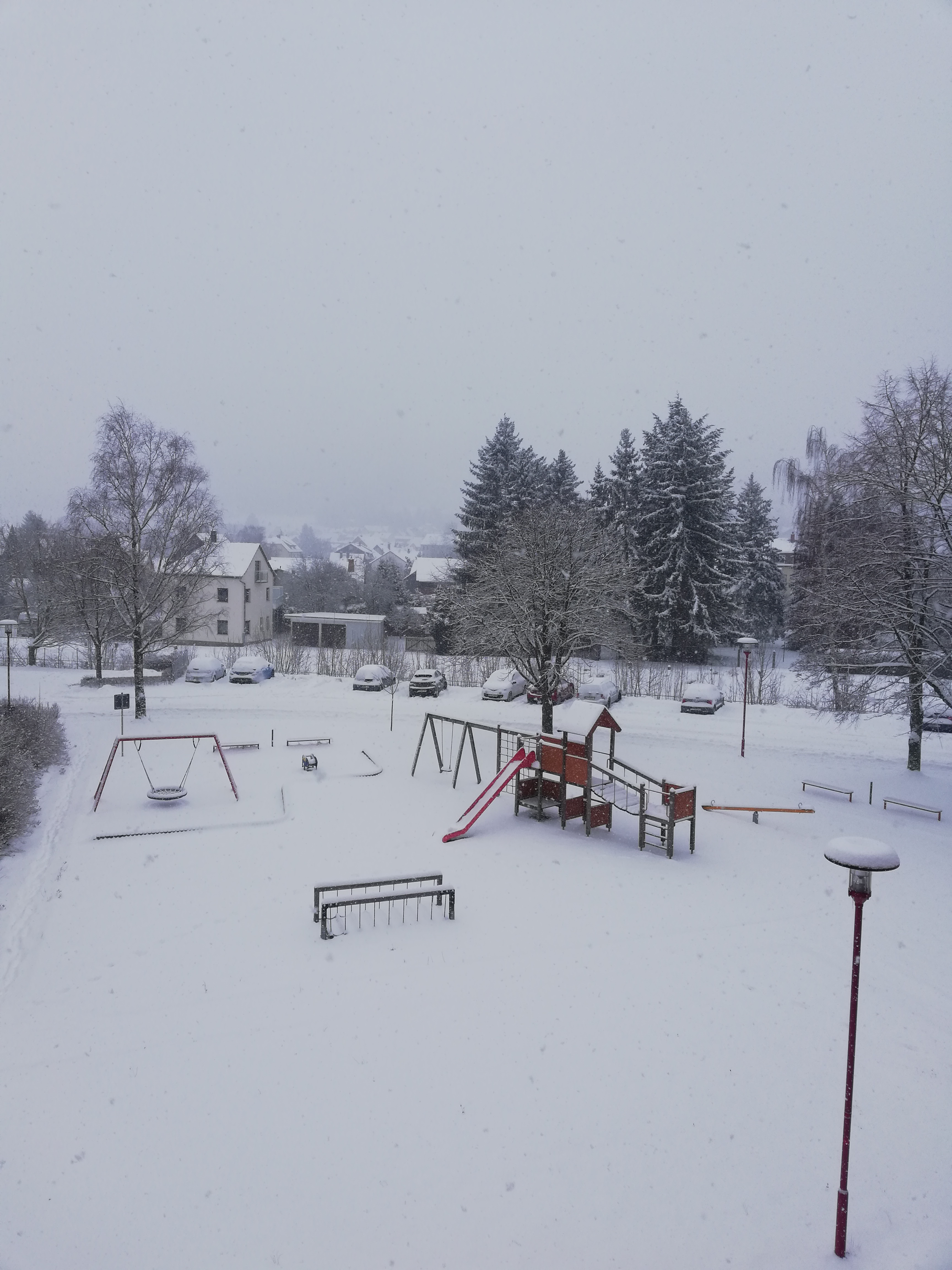 Trotzdem haben wir das gleiche Wetter: aktuell minus 1 Grad (gefühlt minus 5), Schnee kann ich sehen (ca. 2cm), aber die Straßen sind geräumt.