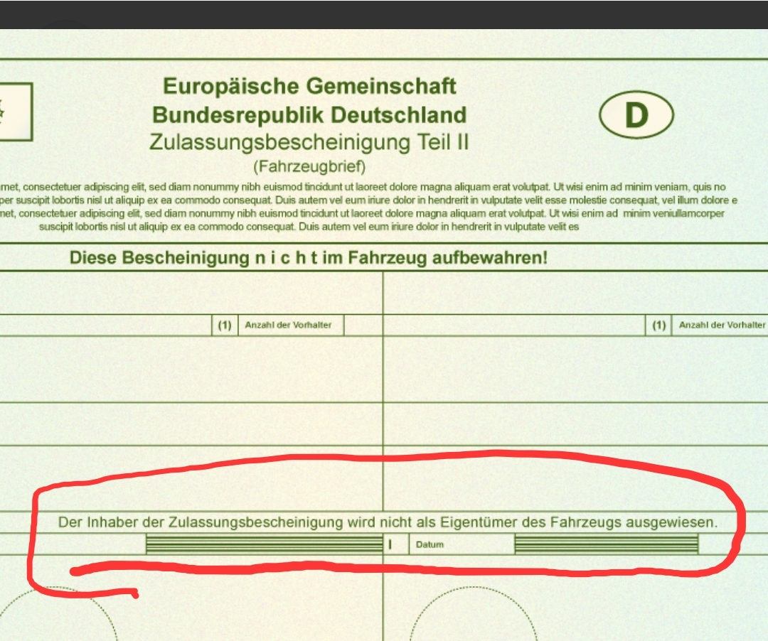 Deshalb wollen die Leasinggesellschaften immer den Teil 2 haben. Das stehst als Halter nämlich du drin, nicht die Leasinggesellschaft.