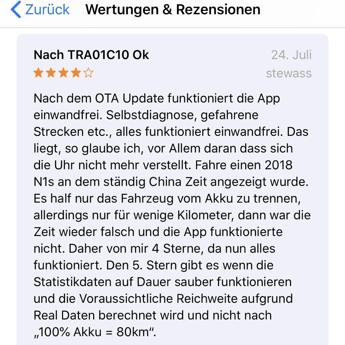 Diese iOS-App Bewertung macht mir Hoffnung, dass es nur an meiner alten Firmware liegt. Hoffentlich schaffe ich es, meinen Niu upzudaten.