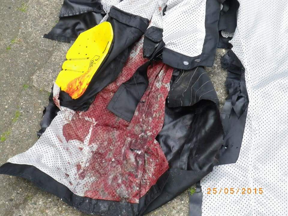 Ja. Als Mahnung.es kann jeden, jeden Tag treffen, egal ob schnell gefahren oder langsam, ob Schuld oder Unschuldig. Das ist die vom Notarzt zerschnittene Hose. Die Stiefel wollt ihr nicht sehen. Mein Bruder hatte die ausgeschüttet und es kamen Knochenreste rausgefallen und ecklige geronnene Blutklumpen...hab bisher 10 oder 11 OPs hinter mir 3x Reha insgesamt 9 Monate Reha.