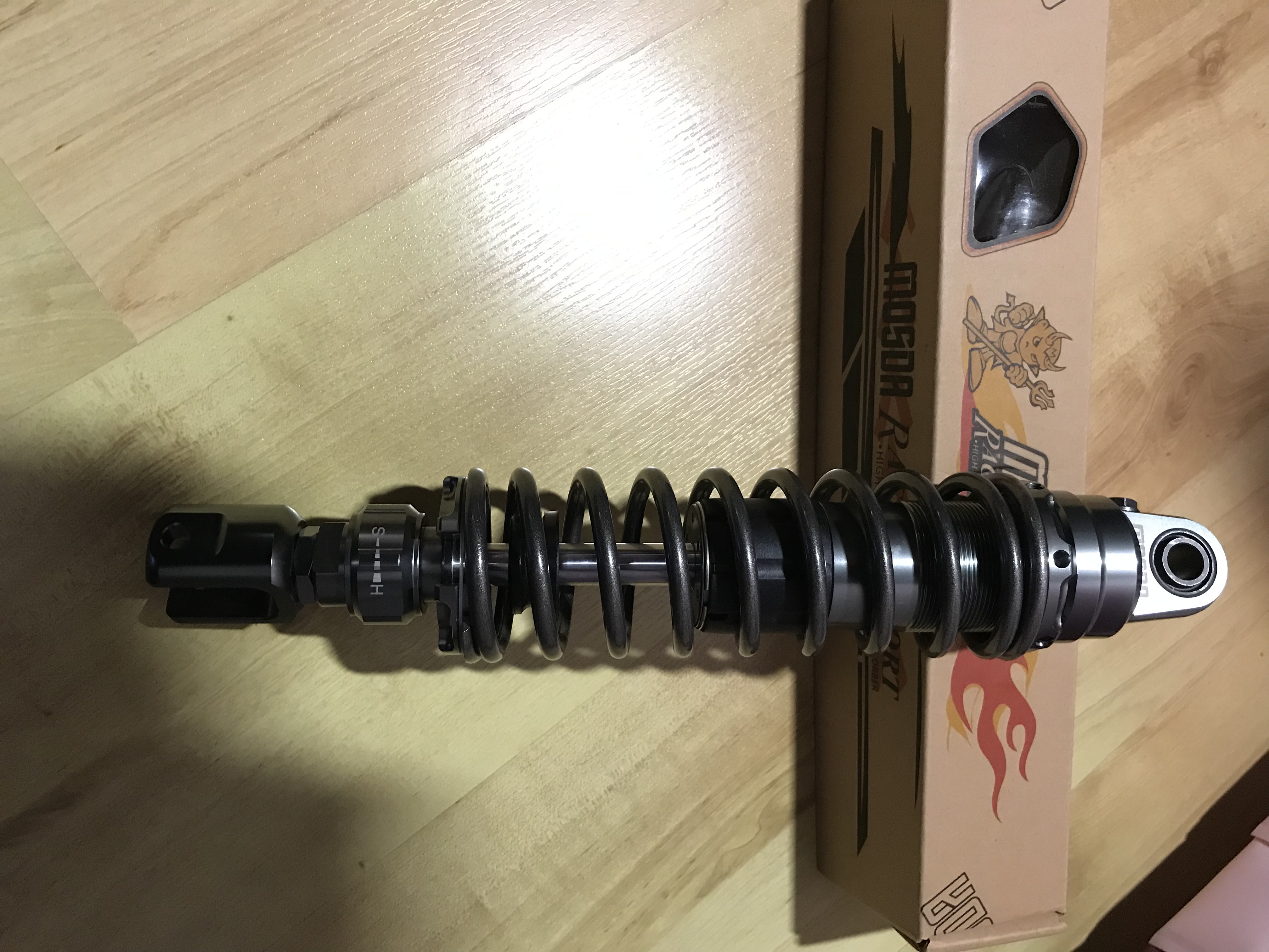 Ich bin gerade dabei die Fuhre etwas angenehmer zu gestalten mit anderen Dämpfern hinten,die just heute per Post eingetroffen sind:)
