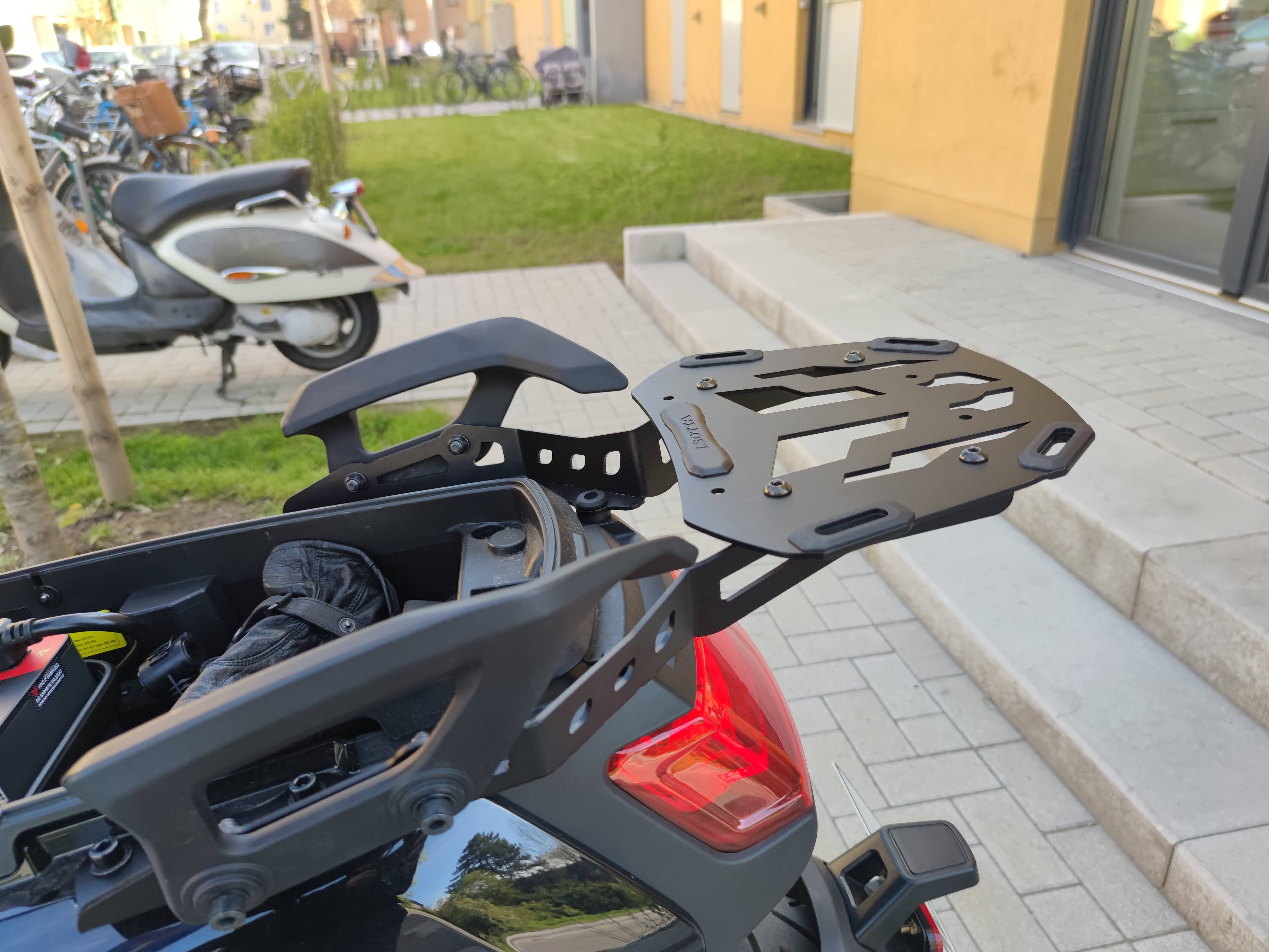 Mir fehlt nun nur noch ein Case hinten, auch als Rückenlehne für den Sozius. Kann da jemand was günstiges empfehlen was auch passt? Mit Trägerplatte am besten, habe da noch nichts.
