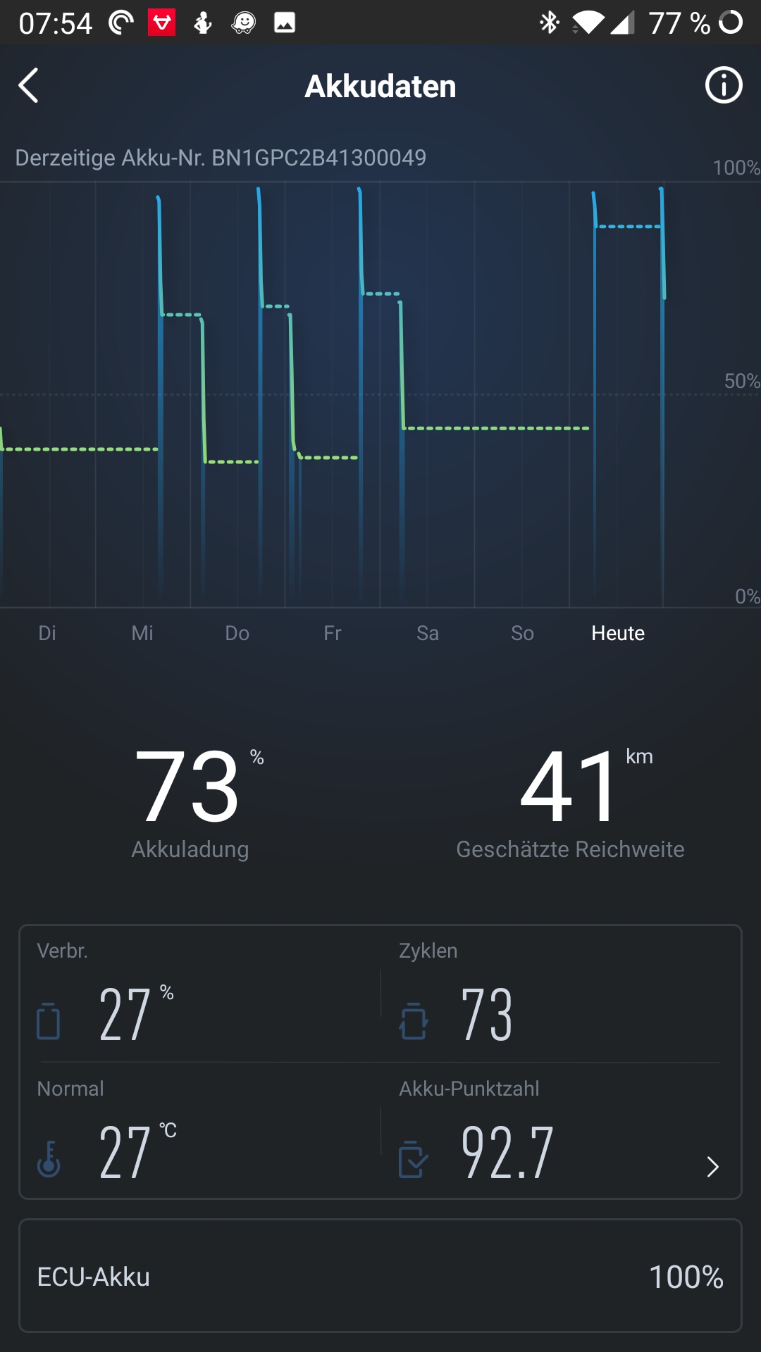 Aber ein Nachweis (Screeshot von der App) sollte unten noch rein.N1 S /NPro/M + /MPro/U Modelle (max. 45km/h):