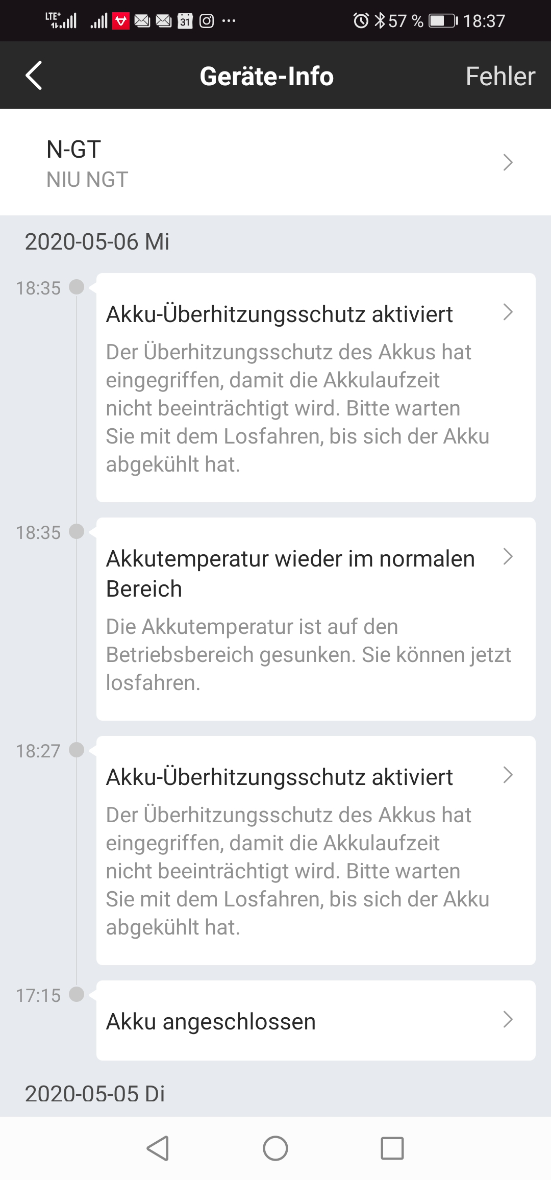 Ich hatte schon 57°C Akkutemp. kurz nach der Fahrt mit dem N Sport. Ausgelesen mit dem Diagnosegerät H1. Fühlte sich echt heiß an. Puh.