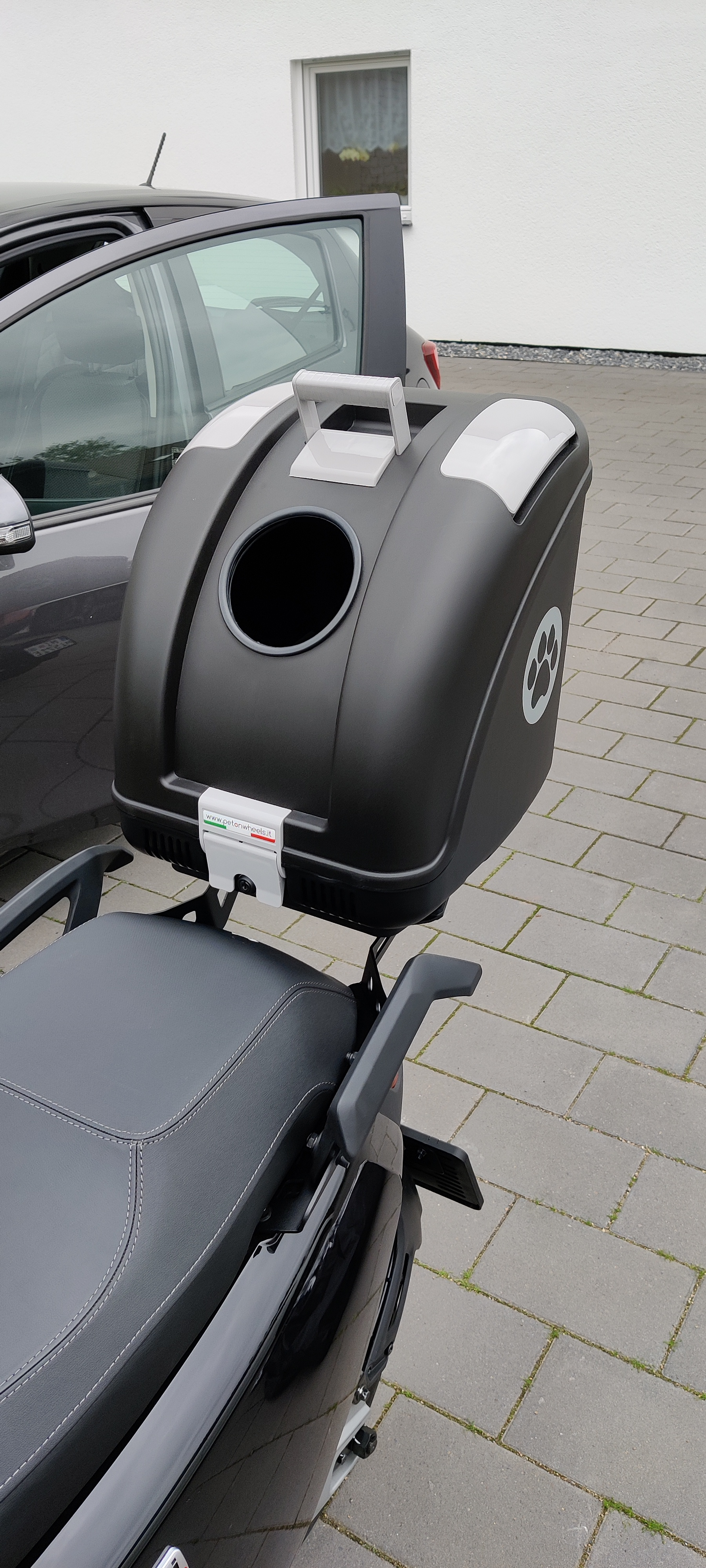 So. Isotta Gepäckträger montiert, ebenso Pet on Wheels Box und neue DashCam Halterung die andere war Mist