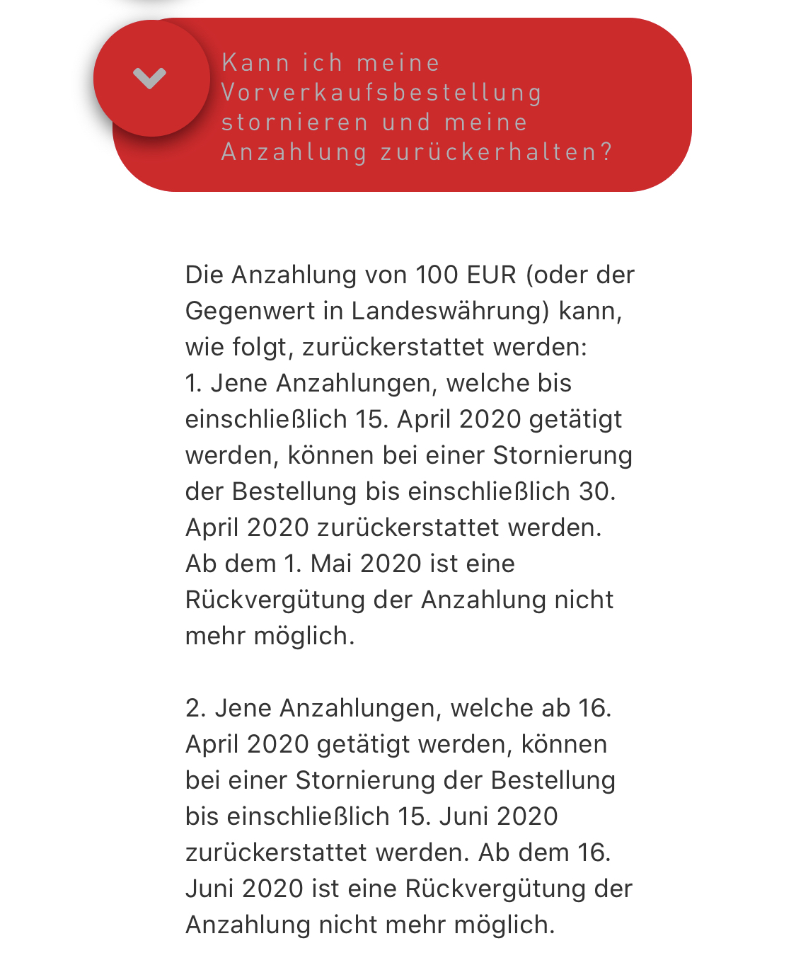 Wo steht auf der Niu Presale Seite, dass ich beim Storno bis 15.6. meine 100€ zurückerhalten?