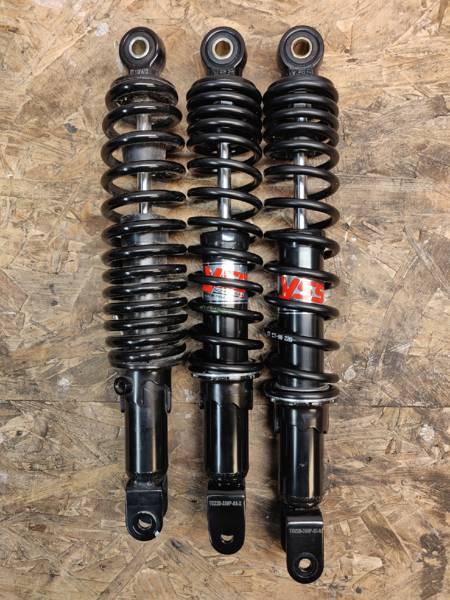 Da das Fahrverhalten mit diesen Dämpfern aber super ist (immernoch straff, aber keine harten Stöße mehr!) habe ich weiter gesucht und bin auf den "YSS TD220-330P-03-X" gestoßen. Diesen gibt es online im Paar für unter 60€!