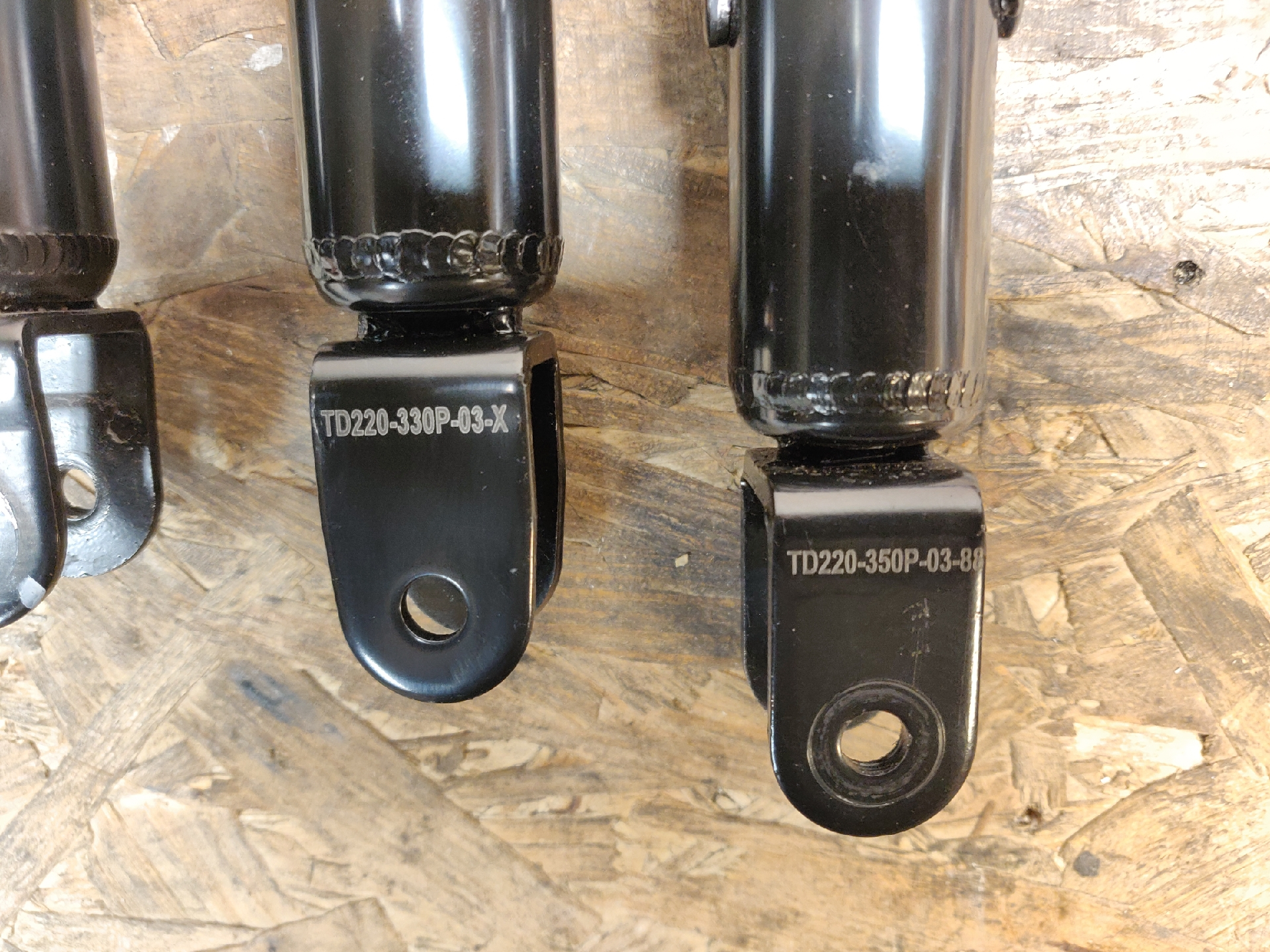 Jawoll, die Zahlen 350 oder 330 geben die Länge der Dämpfer an. Wohl Mitte Loch zu Mitte Loch. Freue mich dass es passt und funktioniert.