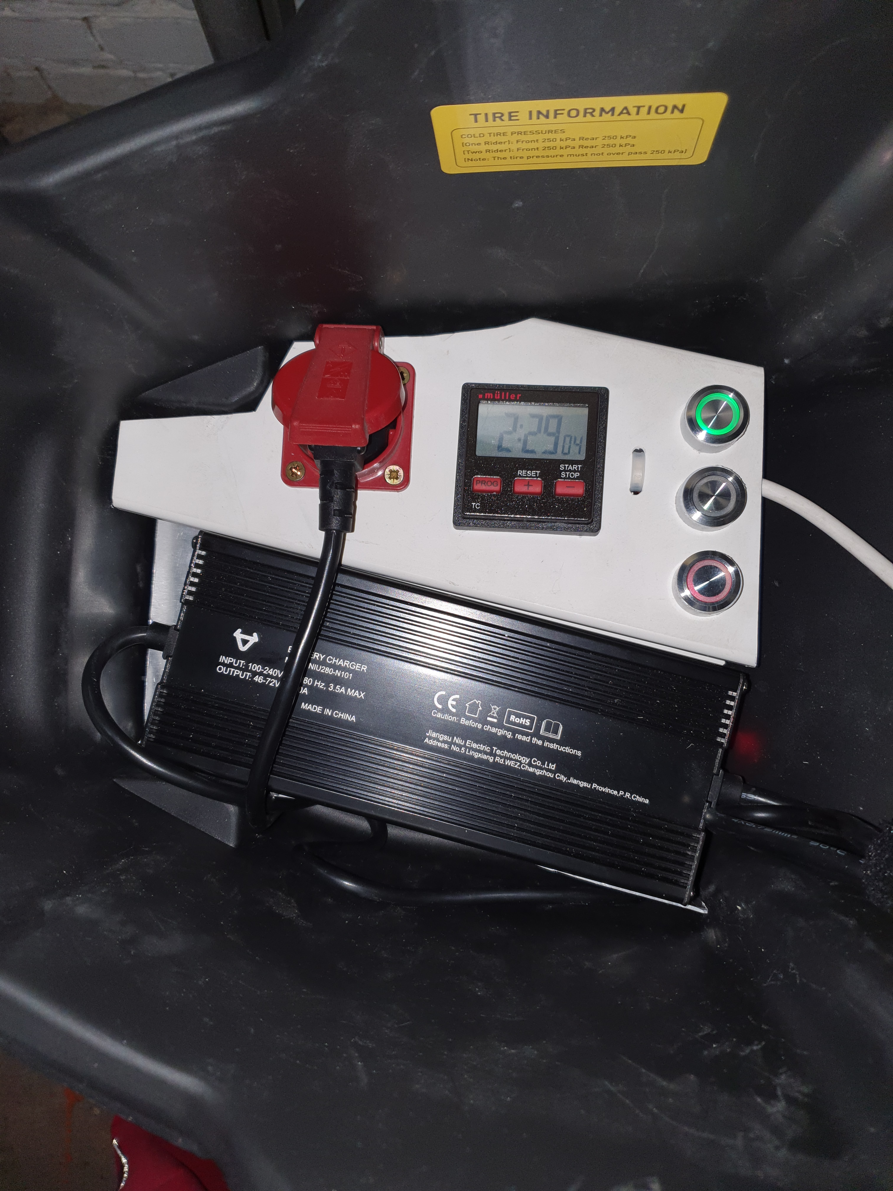 Laden gestartet und das Poolthermometer ins Helmfach gelegt, Sitzbank nur locker aufgelegt.